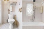 Eerste verdieping: overloop, slaapkamer aan de achterzijde, witte badkamer met ligbad, wastafel en toilet (sanibroyeur), royale 2e slaapkamer met vaste schuifdeurkast aan de voorzijde. Eenvoudig is een 3e slaapkamer te realiseren.