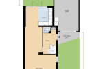 Indeling: zijentree, ruime hal met toilet en trapopgang, straatgerichte woonkamer met prettig lichtinval, half open keuken met L-vormige unit voorzien van inbouwapparatuur en dubbele openslaande deuren naar de tuin. De begane grond is voorzien van een lichte plavuizen vloer en spack wanden.