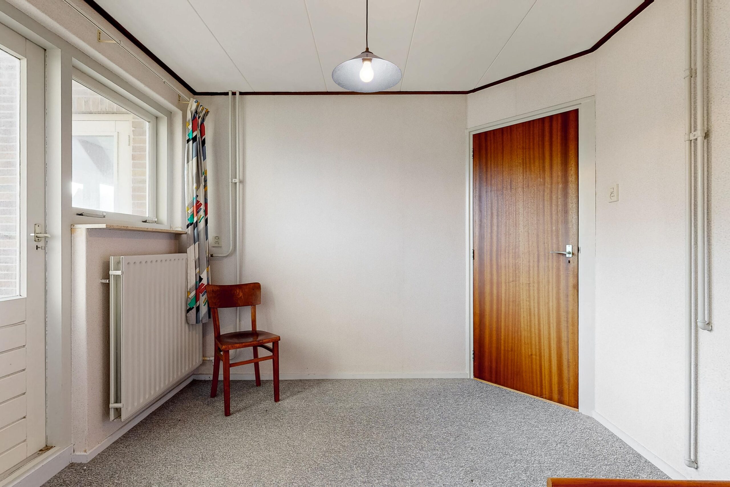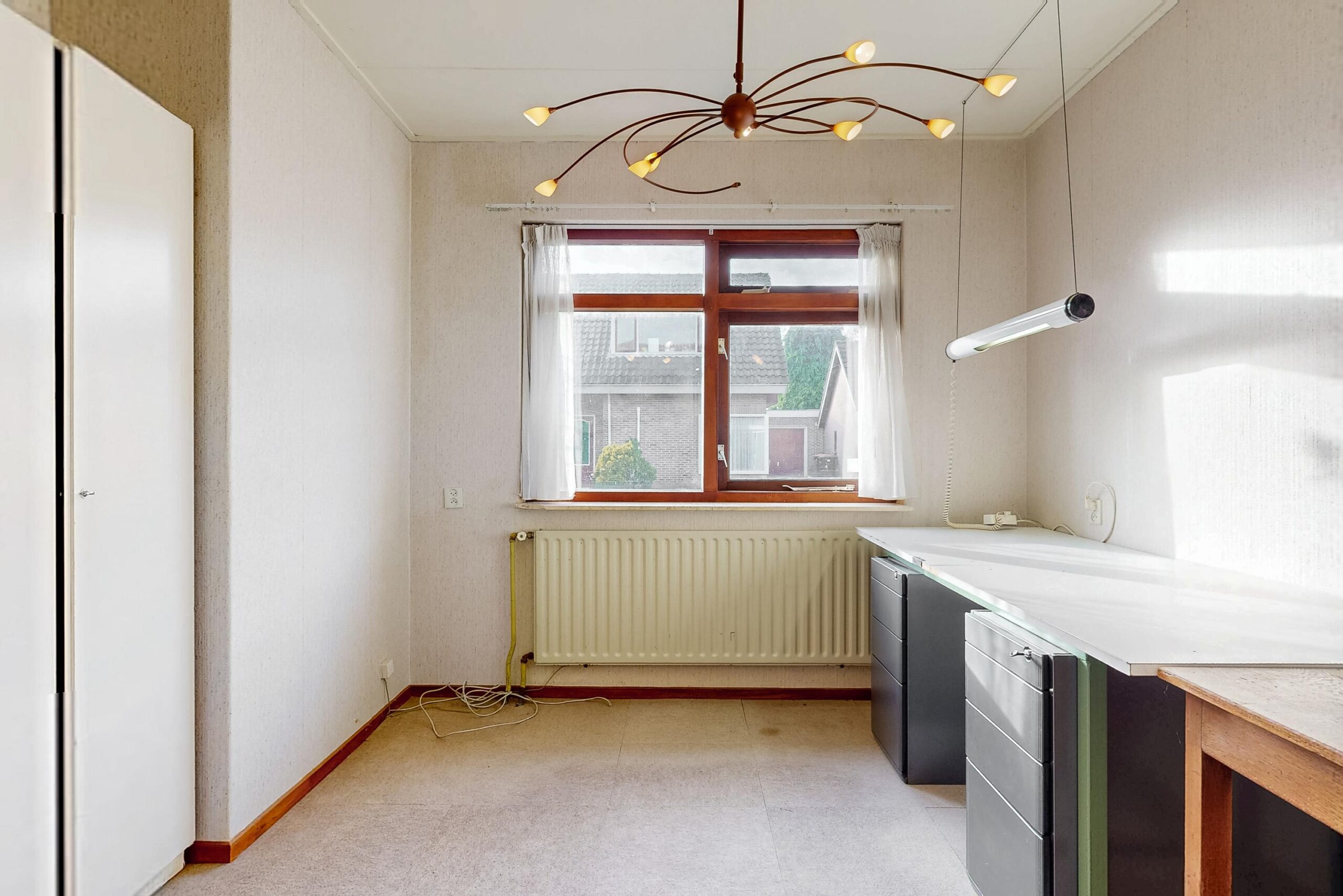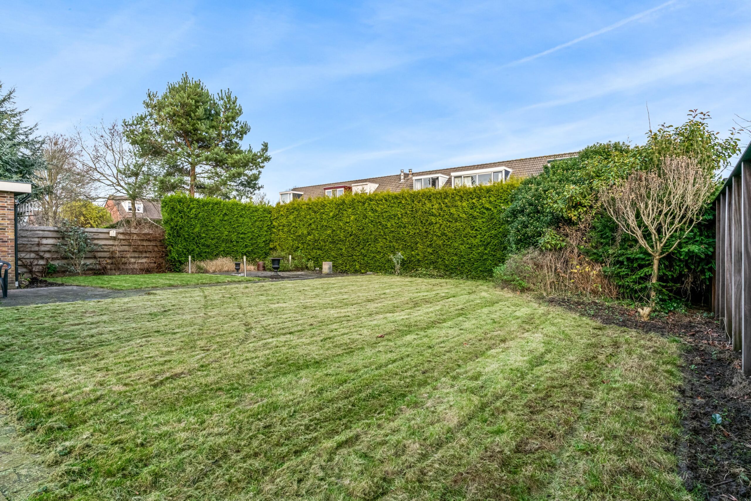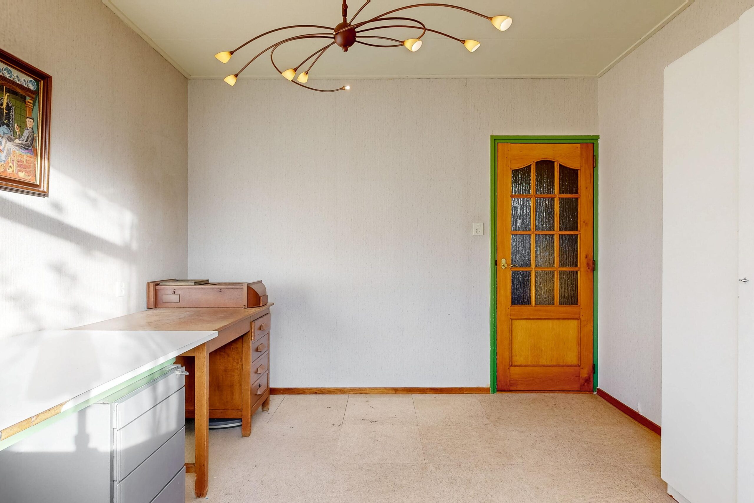 Indeling: hal met vide, trapopgang en toilet, ruime woonkamer met speels niveauverschil, balkenplafond en open haard, open keuken met L-vormige eiken unit voorzien van inbouwapparatuur, bijkeuken, werk-/slaapkamer, toegang tot stahoge kelder, binnendoor bereikbare royale garage met vlizotrap naar grote bergzolder.
