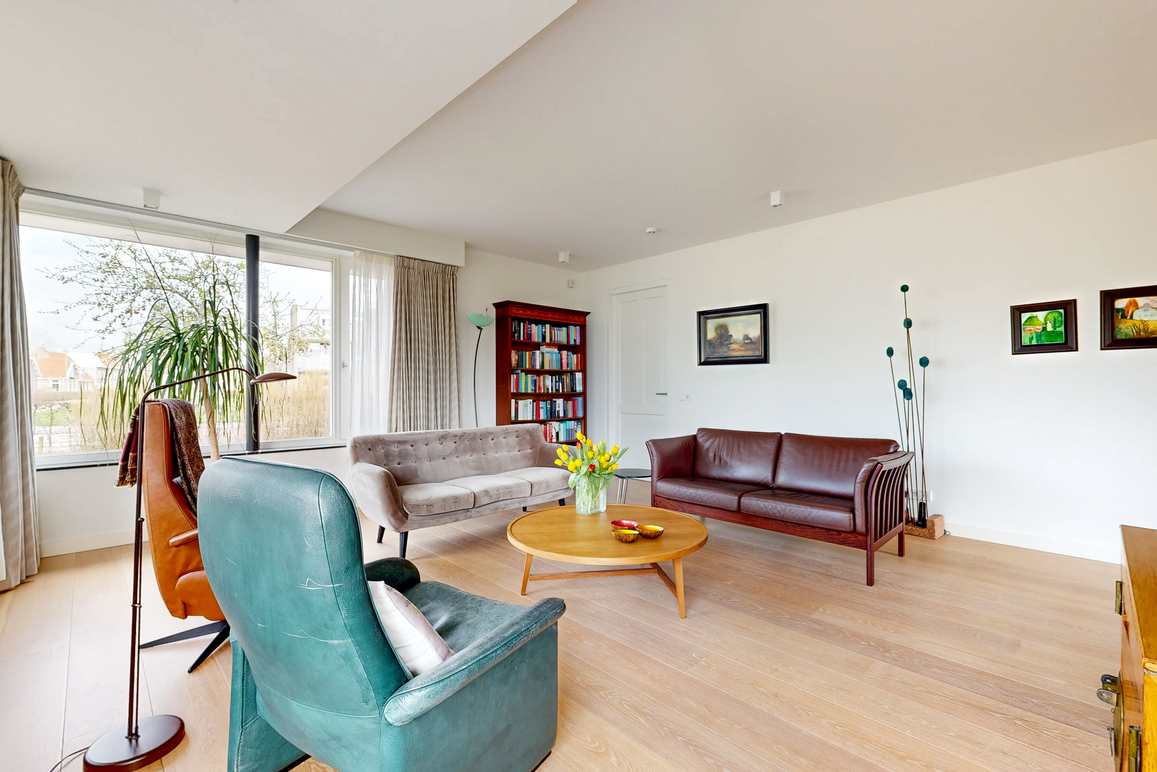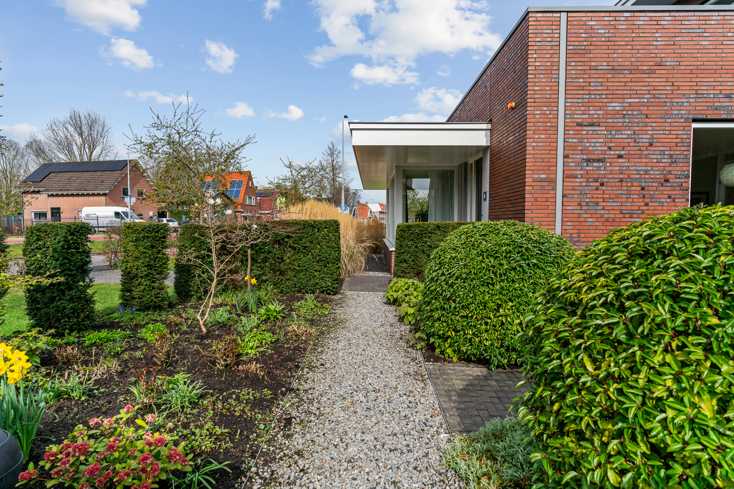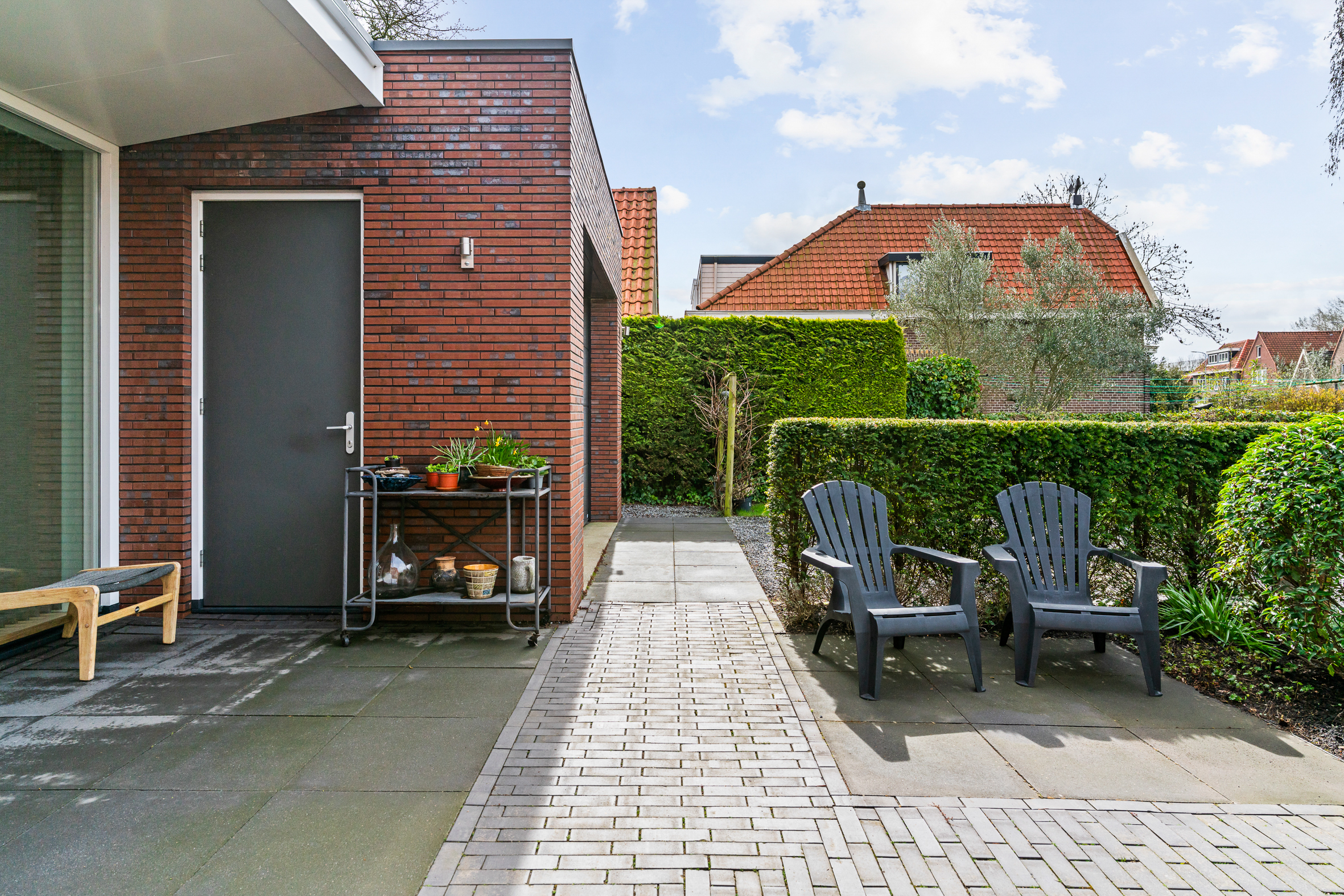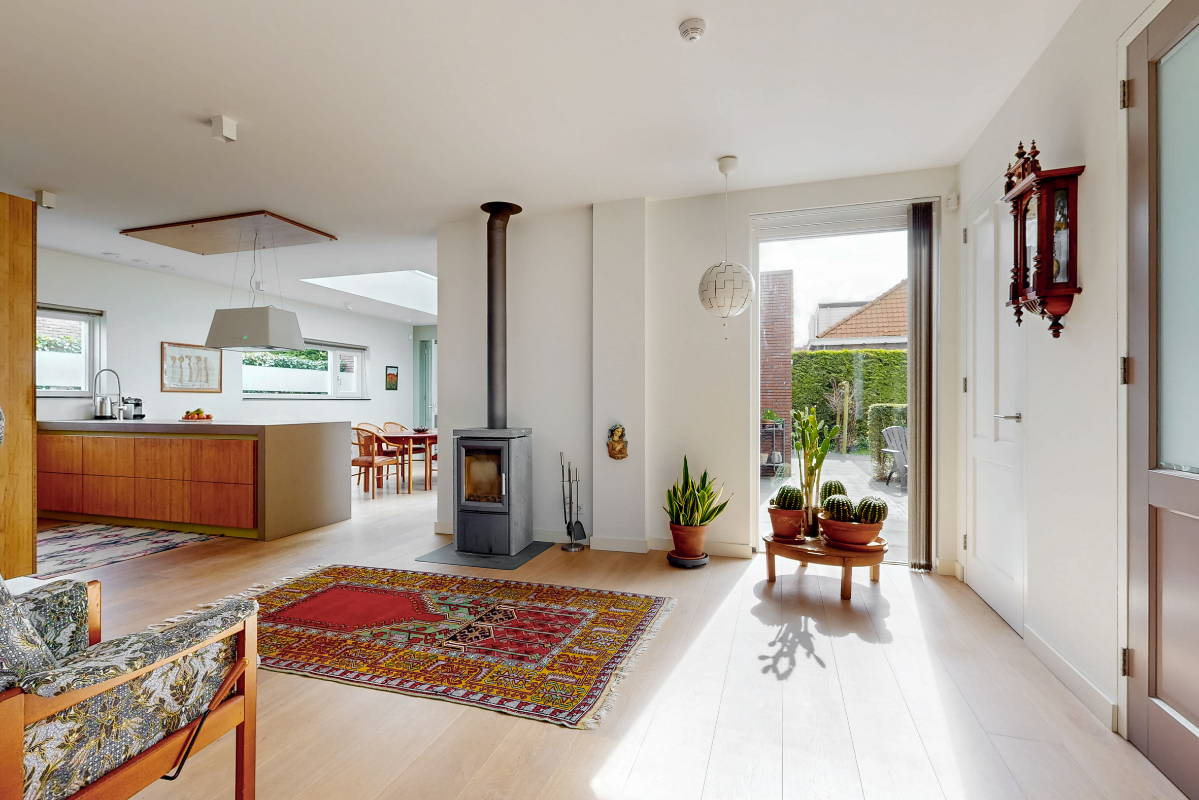 Indeling: entree, voorkamer met speksteenkachel en schuifdeuren naar de ruime woonkamer met veel daglichttoetreding, slaapkamer met inloopkast en toegang tot wit/grijze badkamer met inloopdouche, 2e wandcloset, dubbele wastafel in meubel en designradiator. De woonkeuken heeft een dubbele rechte unit voorzien van inductiekookplaat, afzuigkap, koelkast, vriezer, vaatwasser en gascomfort. Gevolgd door het zitgedeelte met fraaie lichtstraat en dubbele openslaande tuindeuren, praktische bijkeuken en binnendoor bereikbare garage met elektrische bedienbare deur, achter entree met toilet voorzien van wandcloset en trapopgang.