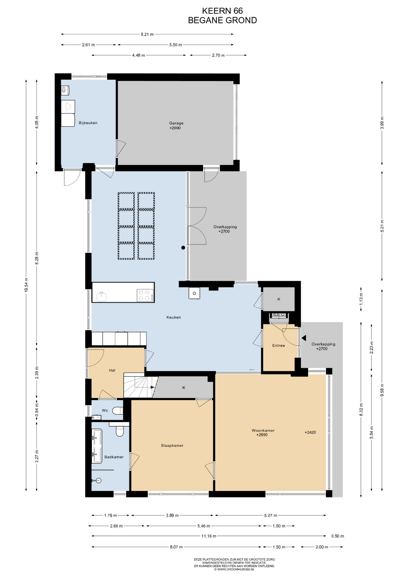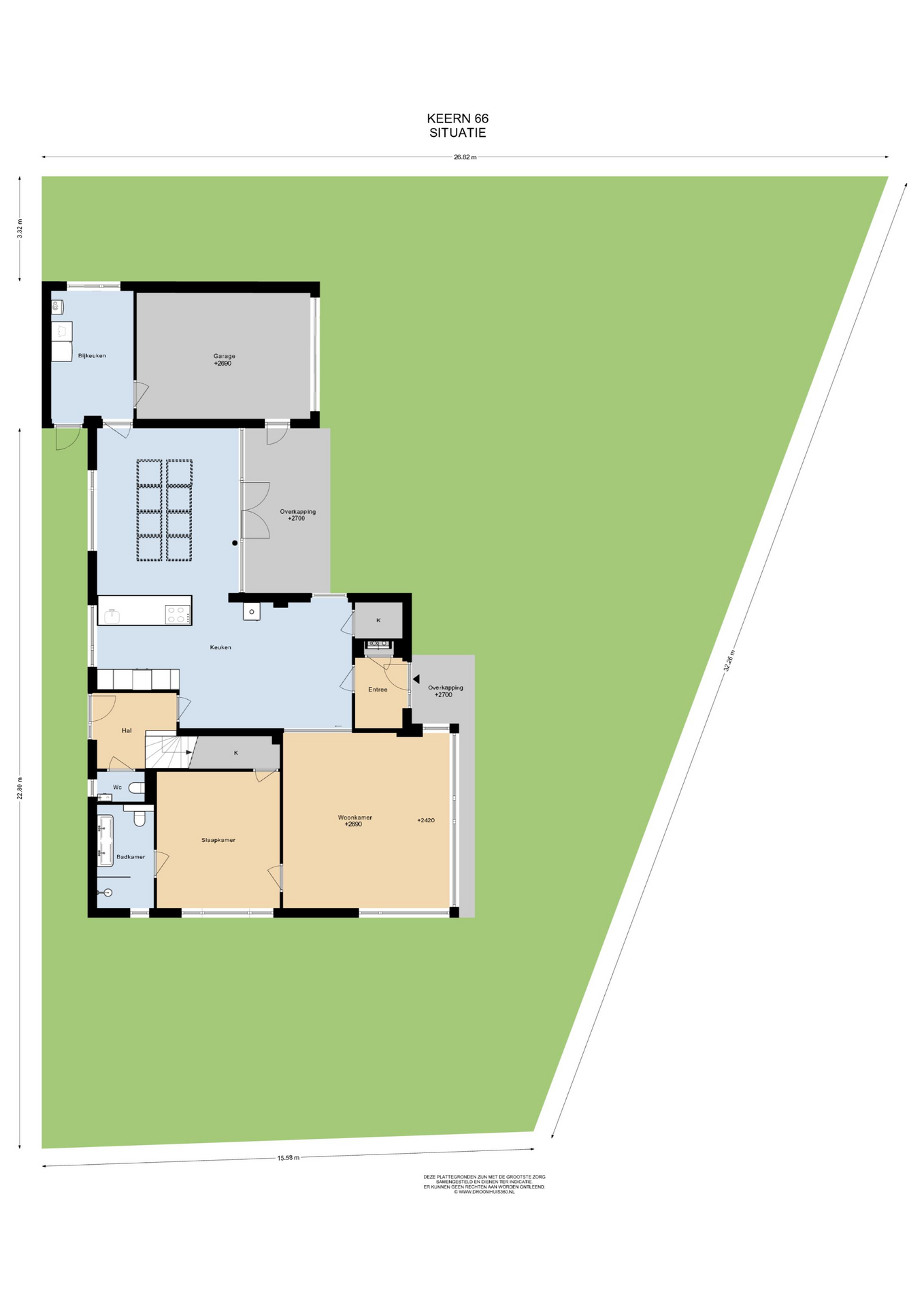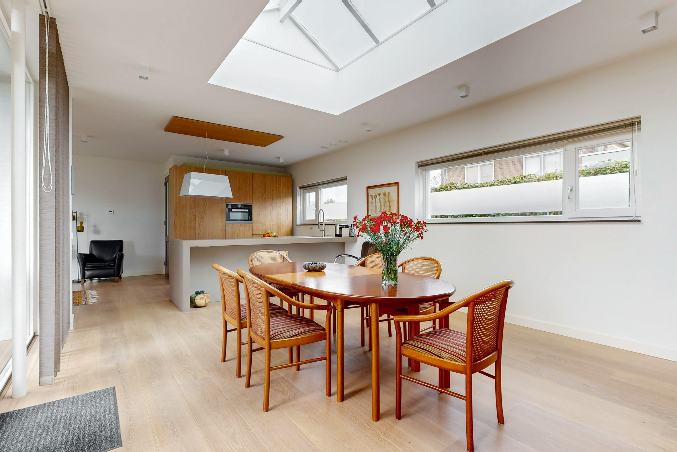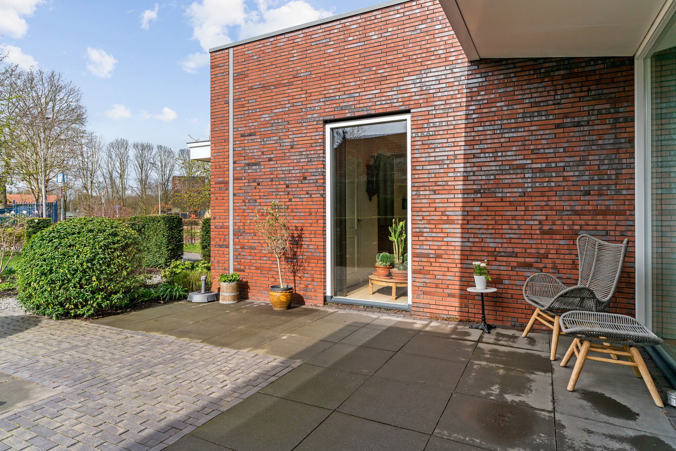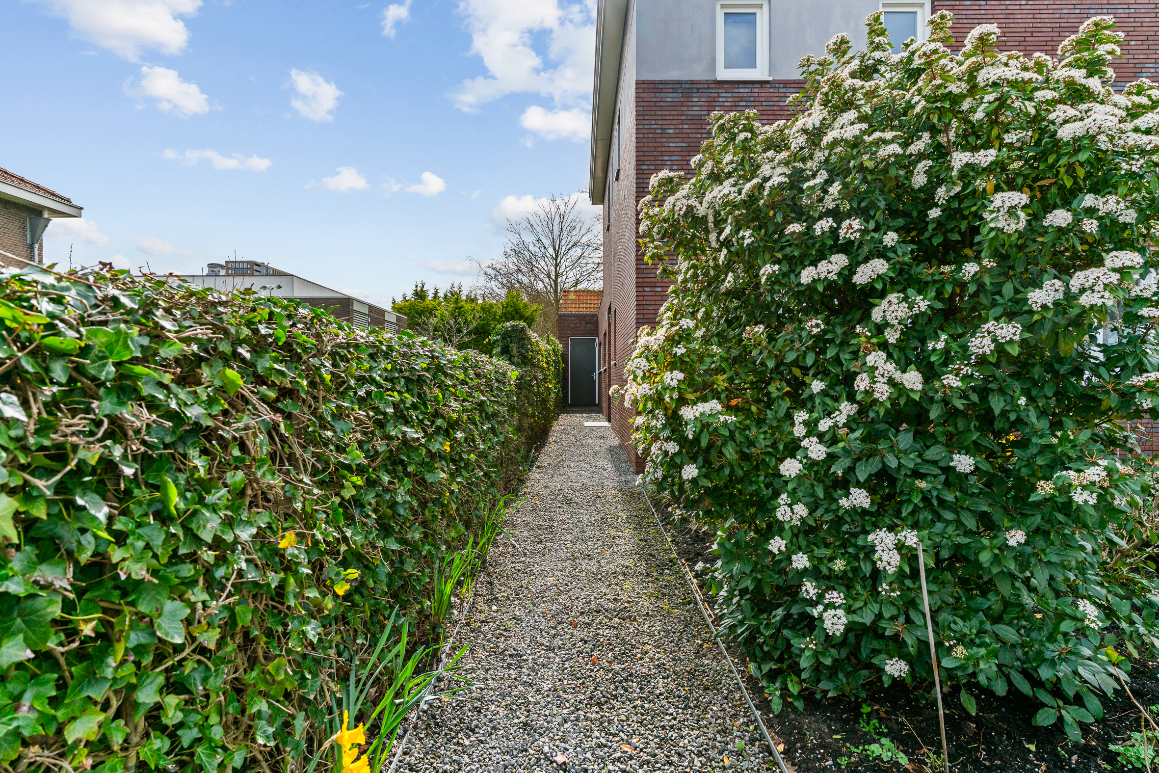 Indeling: entree, voorkamer met speksteenkachel en schuifdeuren naar de ruime woonkamer met veel daglichttoetreding, slaapkamer met inloopkast en toegang tot wit/grijze badkamer met inloopdouche, 2e wandcloset, dubbele wastafel in meubel en designradiator. De woonkeuken heeft een dubbele rechte unit voorzien van inductiekookplaat, afzuigkap, koelkast, vriezer, vaatwasser en gascomfort. Gevolgd door het zitgedeelte met fraaie lichtstraat en dubbele openslaande tuindeuren, praktische bijkeuken en binnendoor bereikbare garage met elektrische bedienbare deur, achter entree met toilet voorzien van wandcloset en trapopgang.