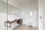 Eerste verdieping: overloop, 2 ruime slaapkamers, 3e toilet met wandcloset en toegang tot het dakterras.