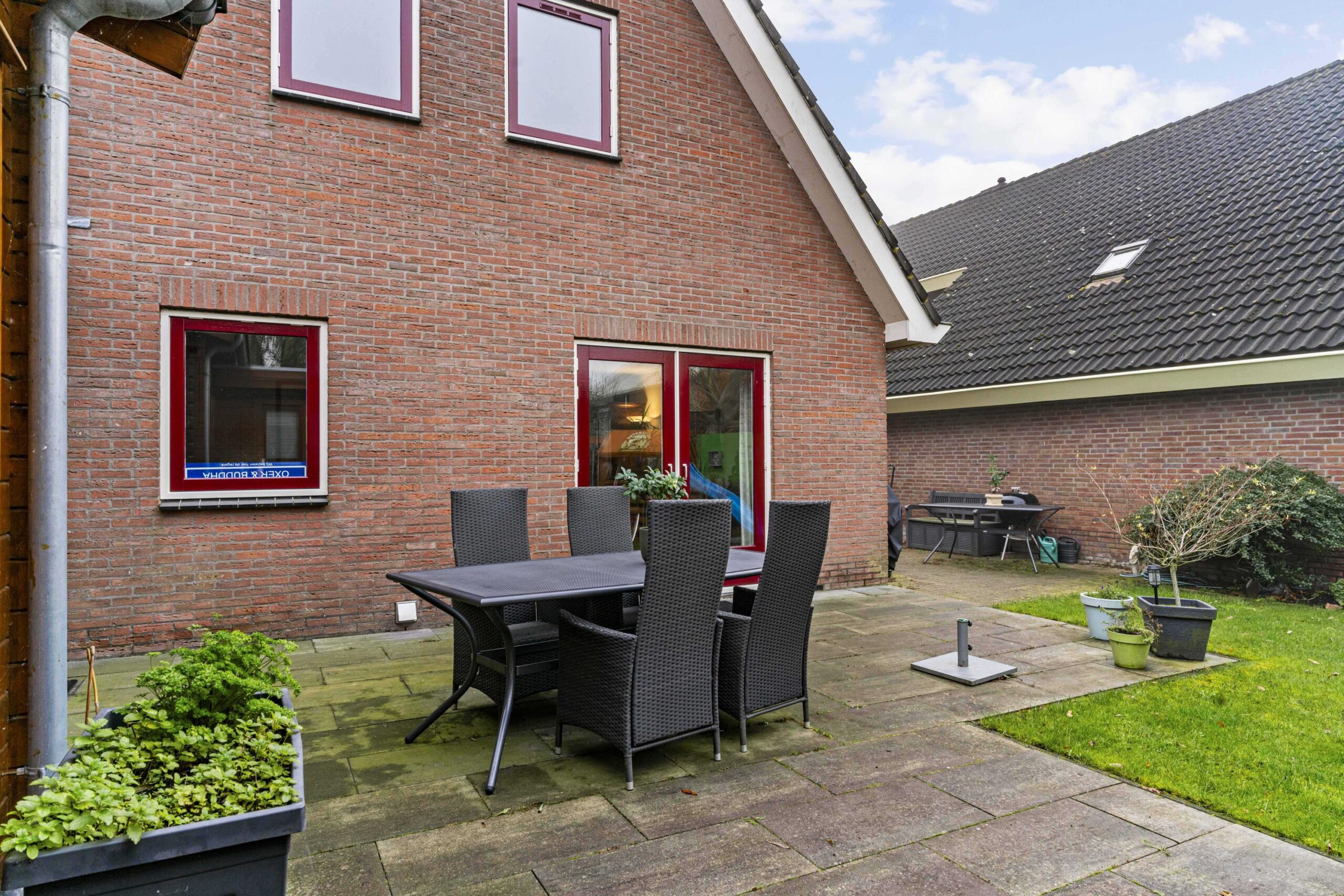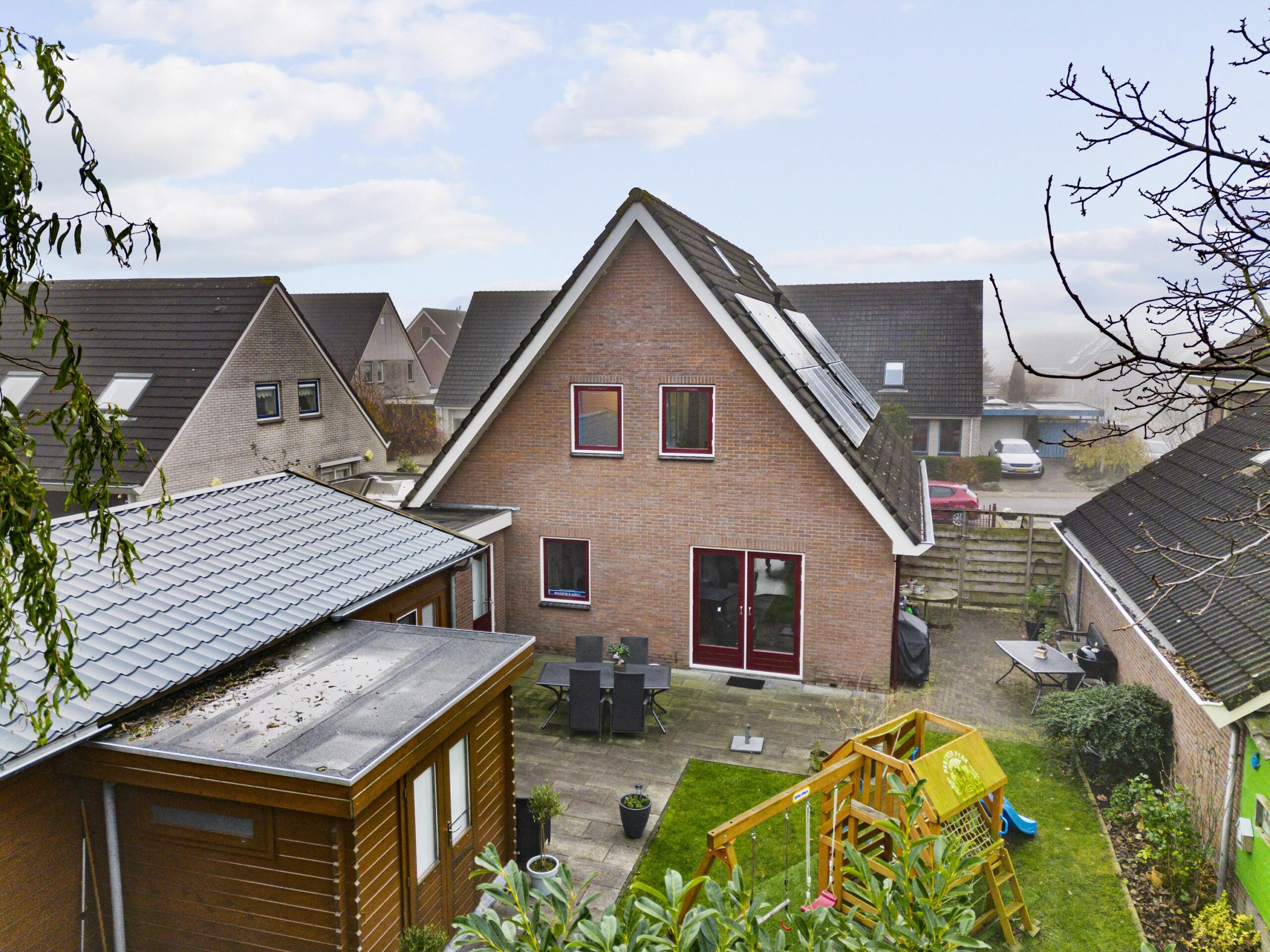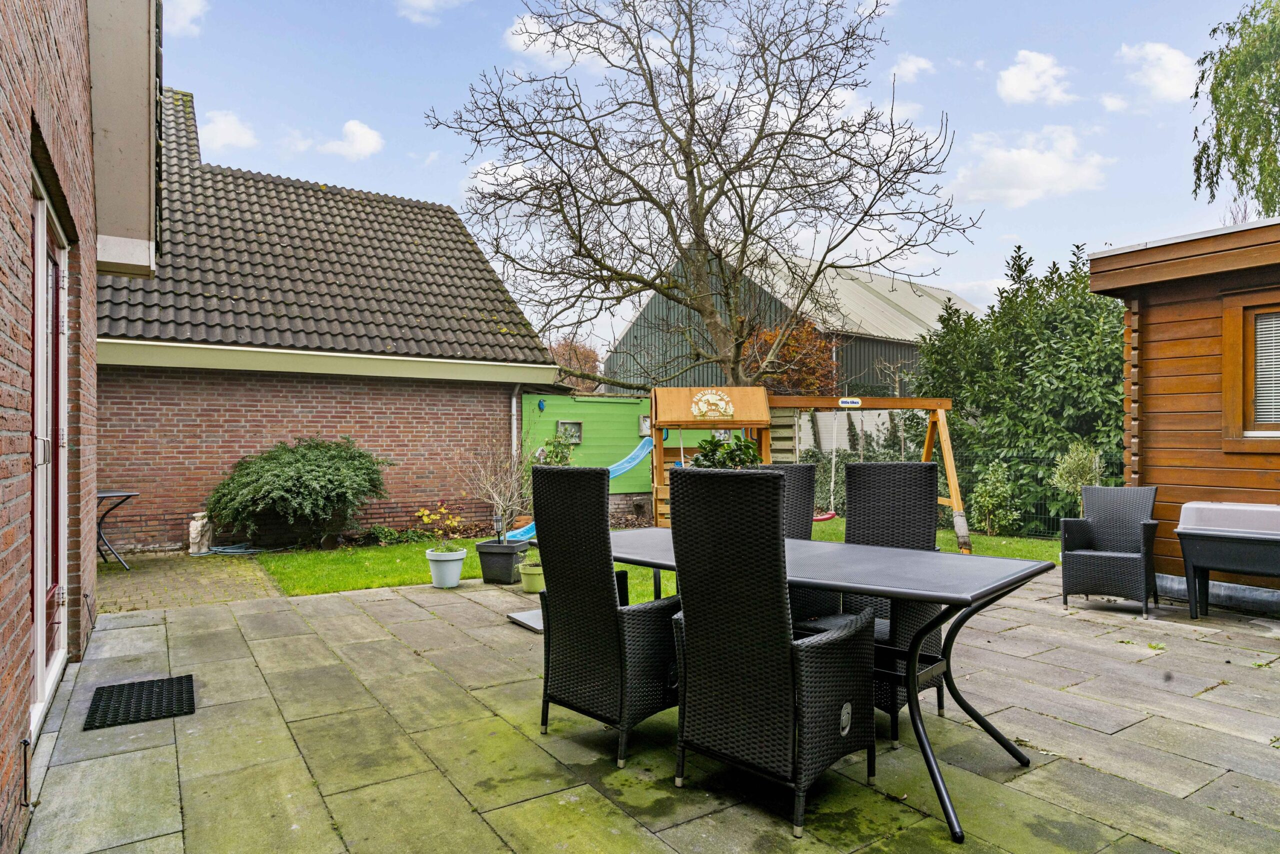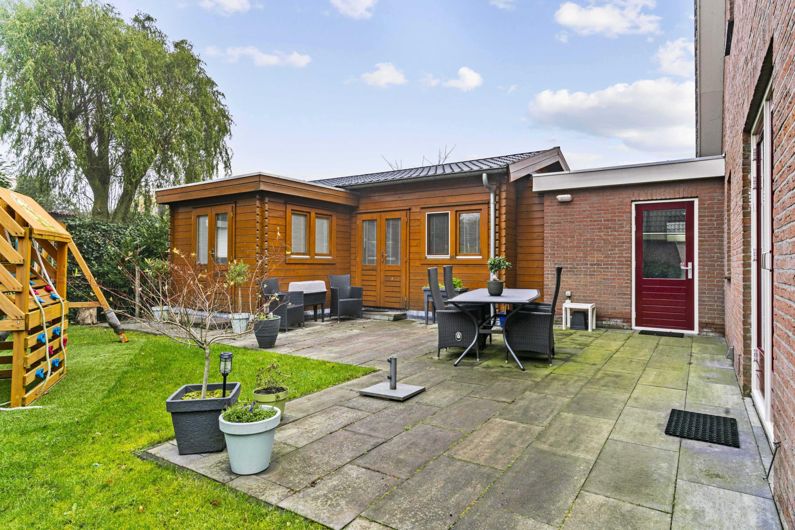 Kindvriendelijk gelegen vrijstaande woning in compleet dorp met gastenverblijf en privacy volle tuin.