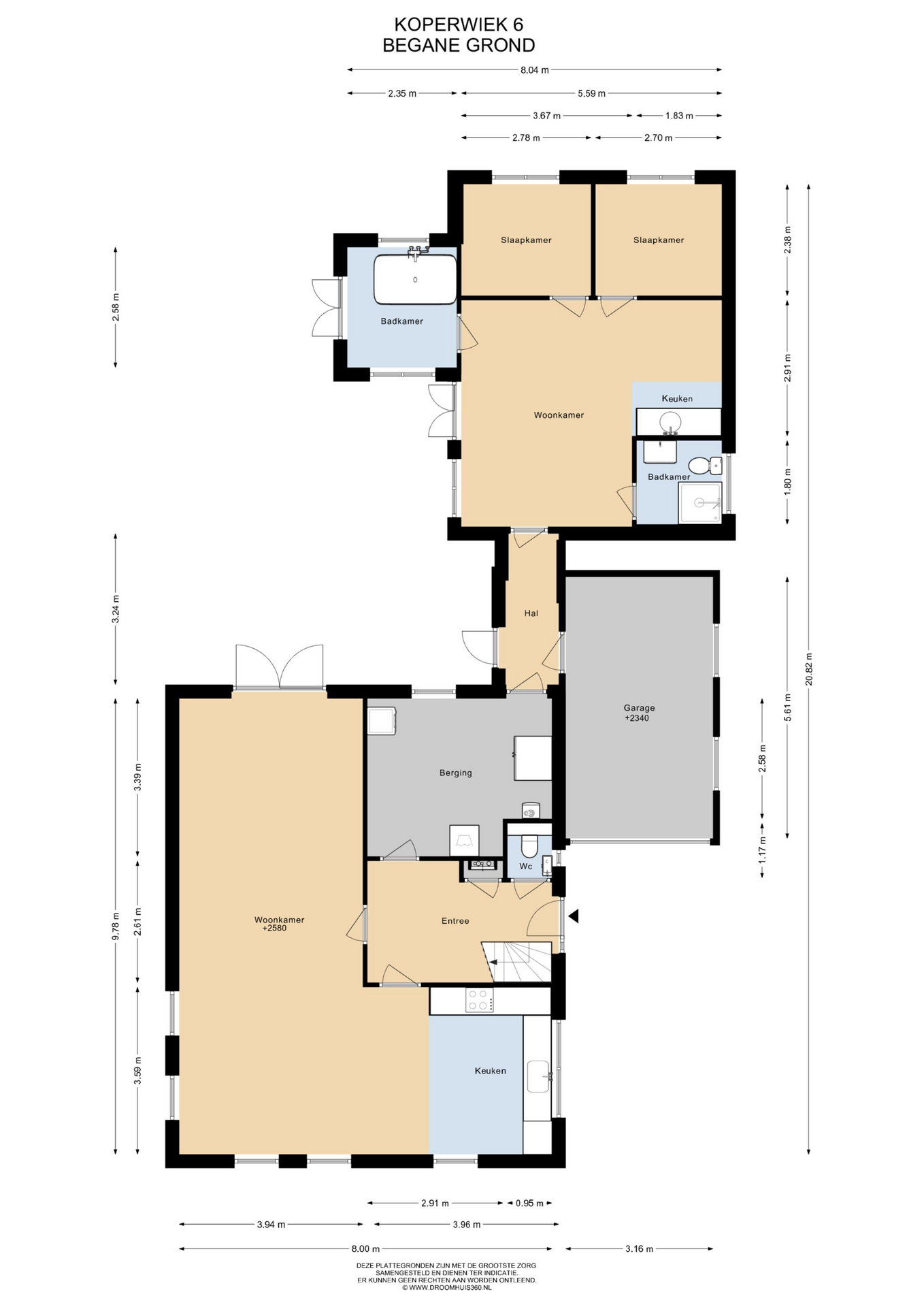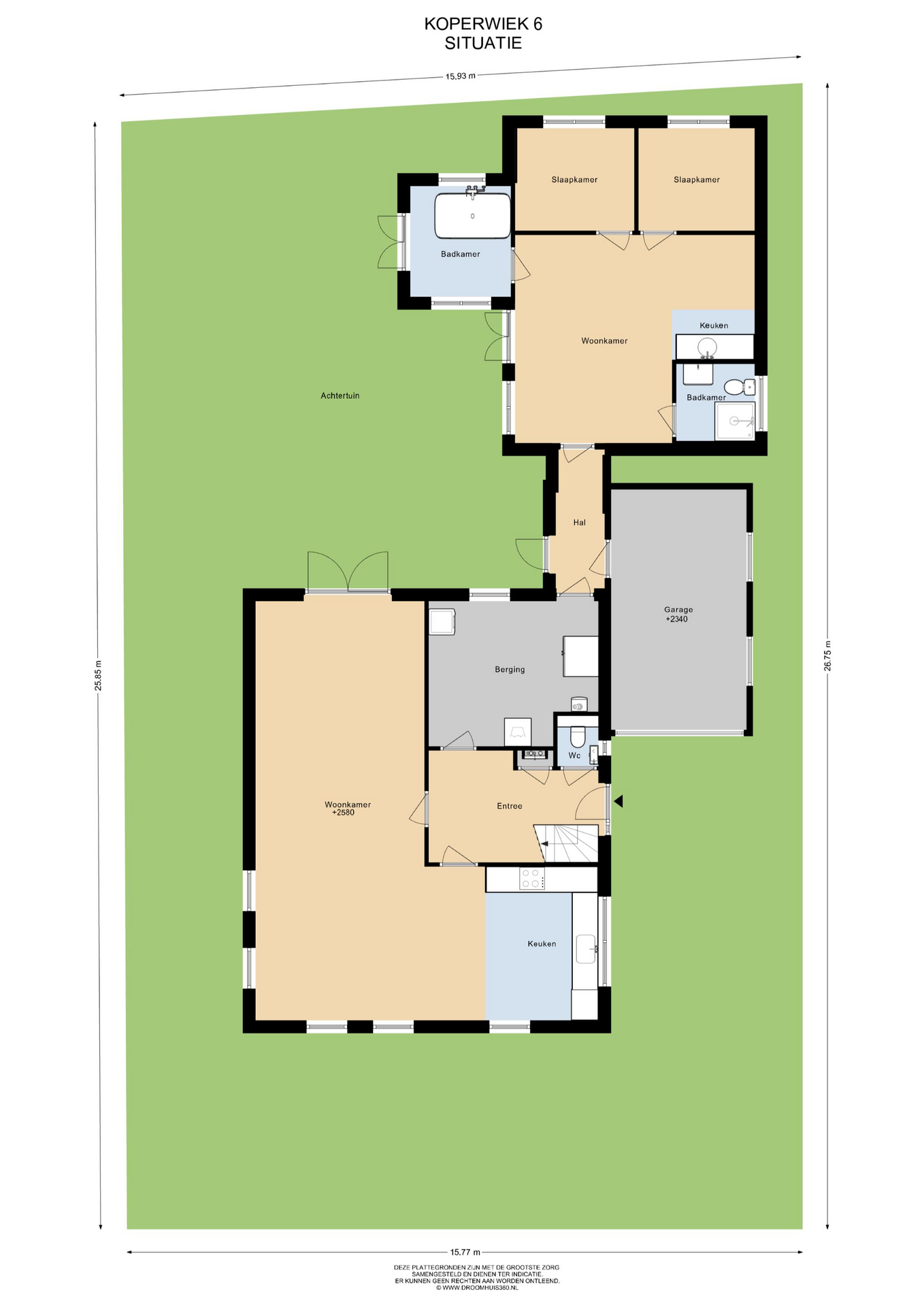voorzien van inbouw koelkast, vaatwasser, elektrische oven, inductiekookplaat en RVS-schouw, grote bijkeuken, doorloop naar binnendoor bereikbare garage, gastenverblijf