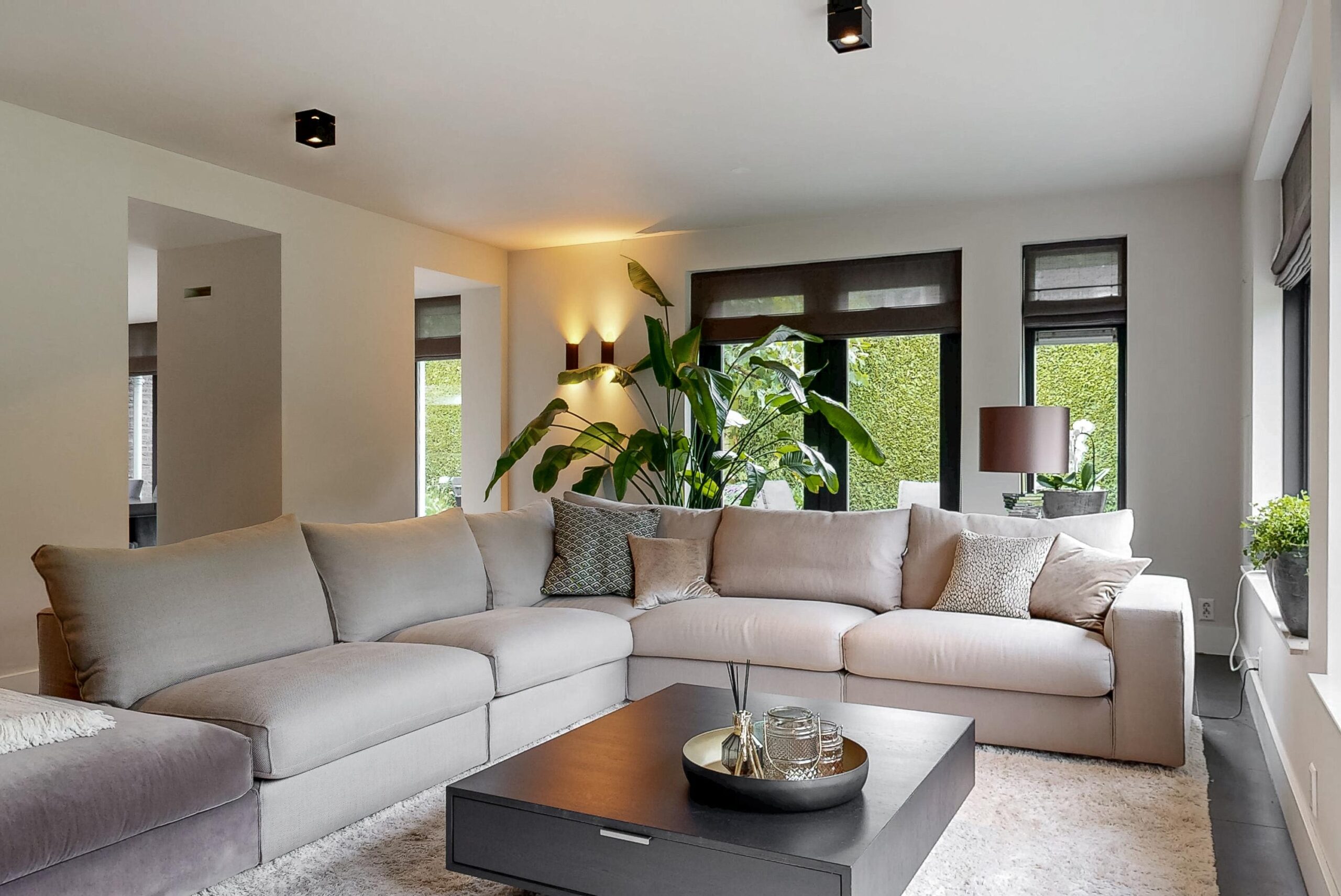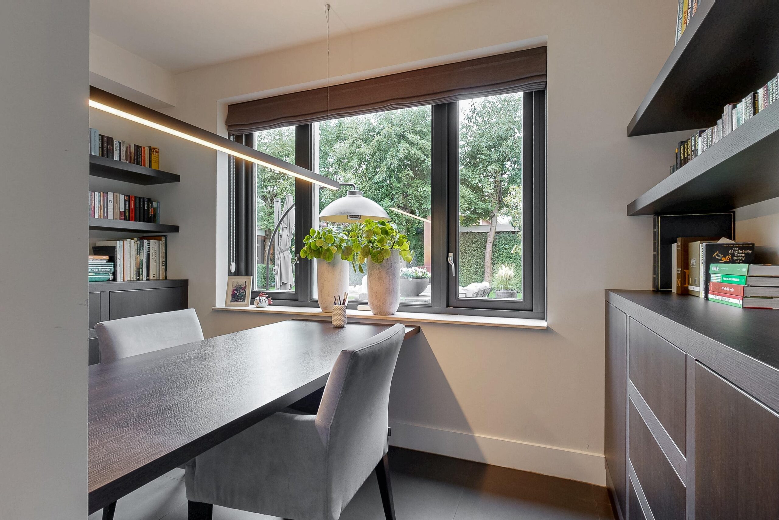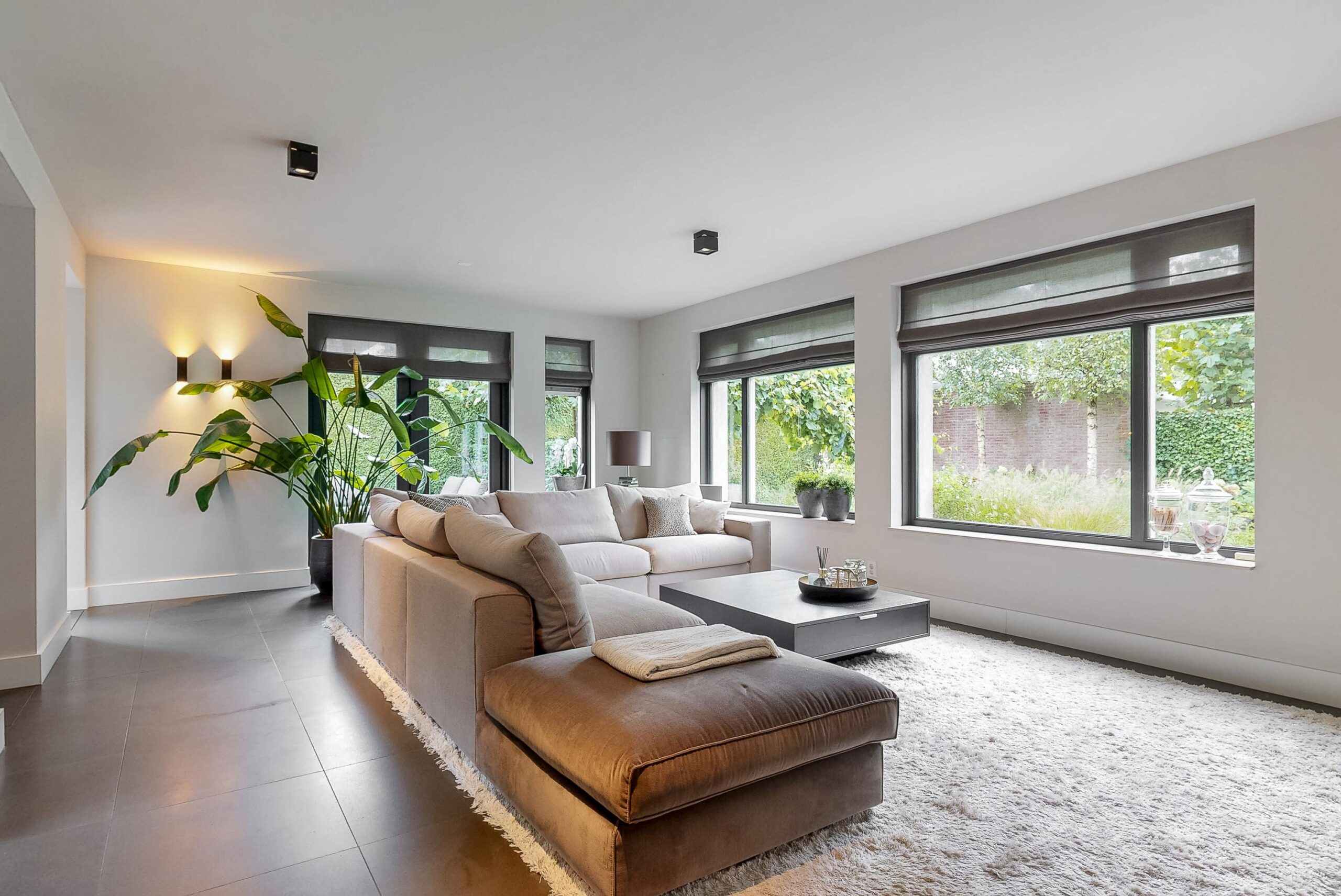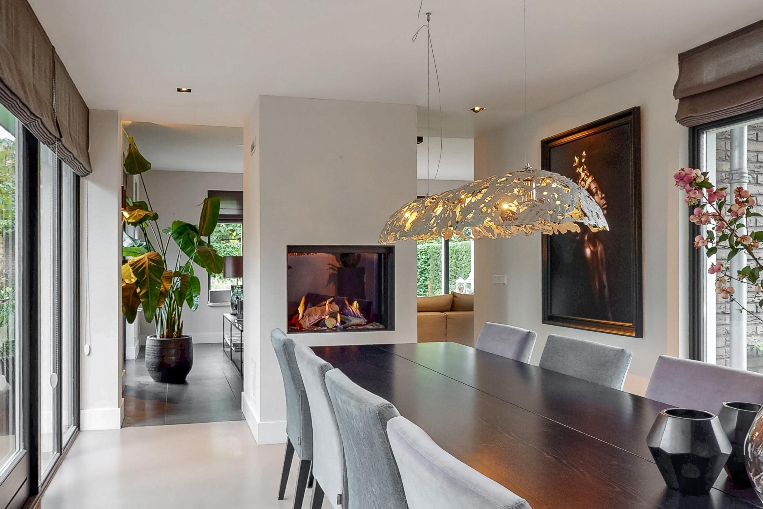 De villa is luxe afgewerkt met pleisterwerk wanden en plafonds, een vloeivloer op de begane grond en een massief visgraat parketvloer op de eerste en tweede verdieping. De wko-installatie verwarmt in de winter en koelt in de zomer voor een ideaal en comfortabel woonklimaat. Er zijn daarnaast 18 zonnepanelen geplaatst.