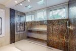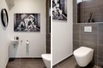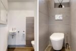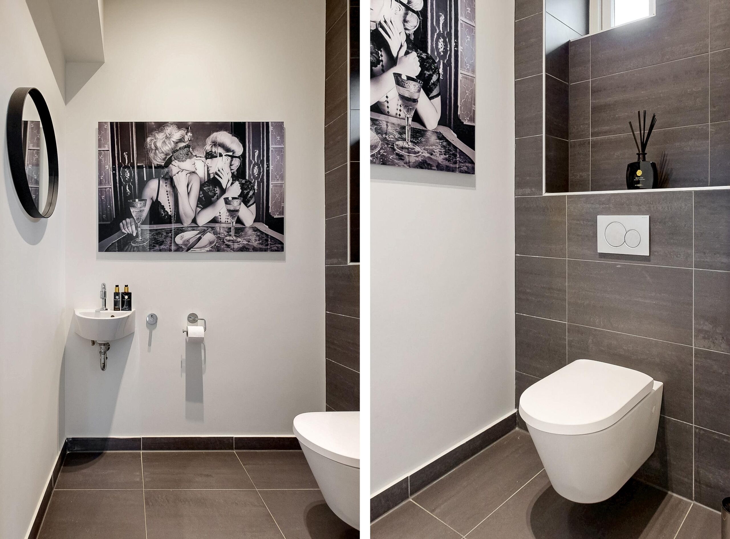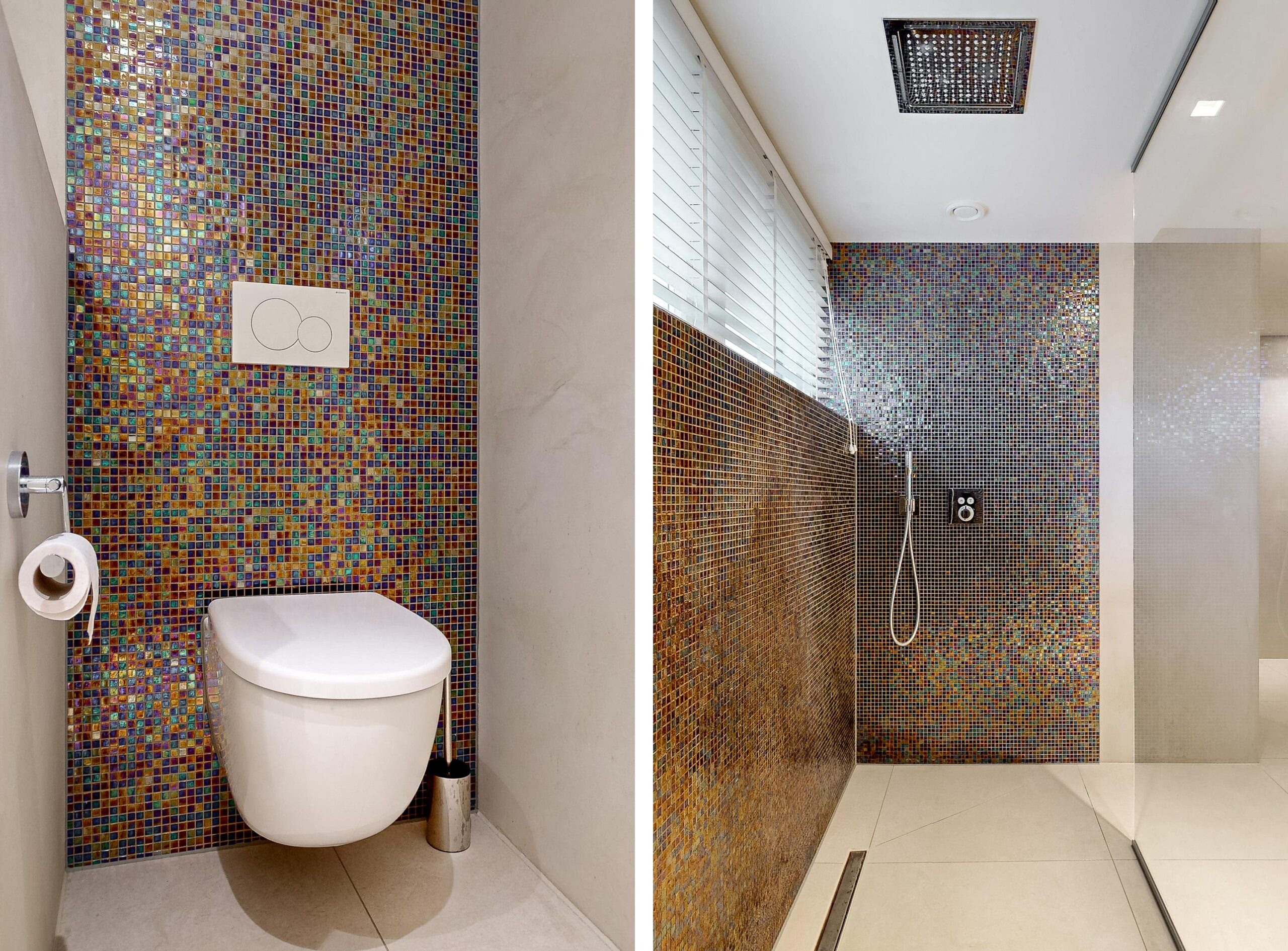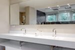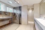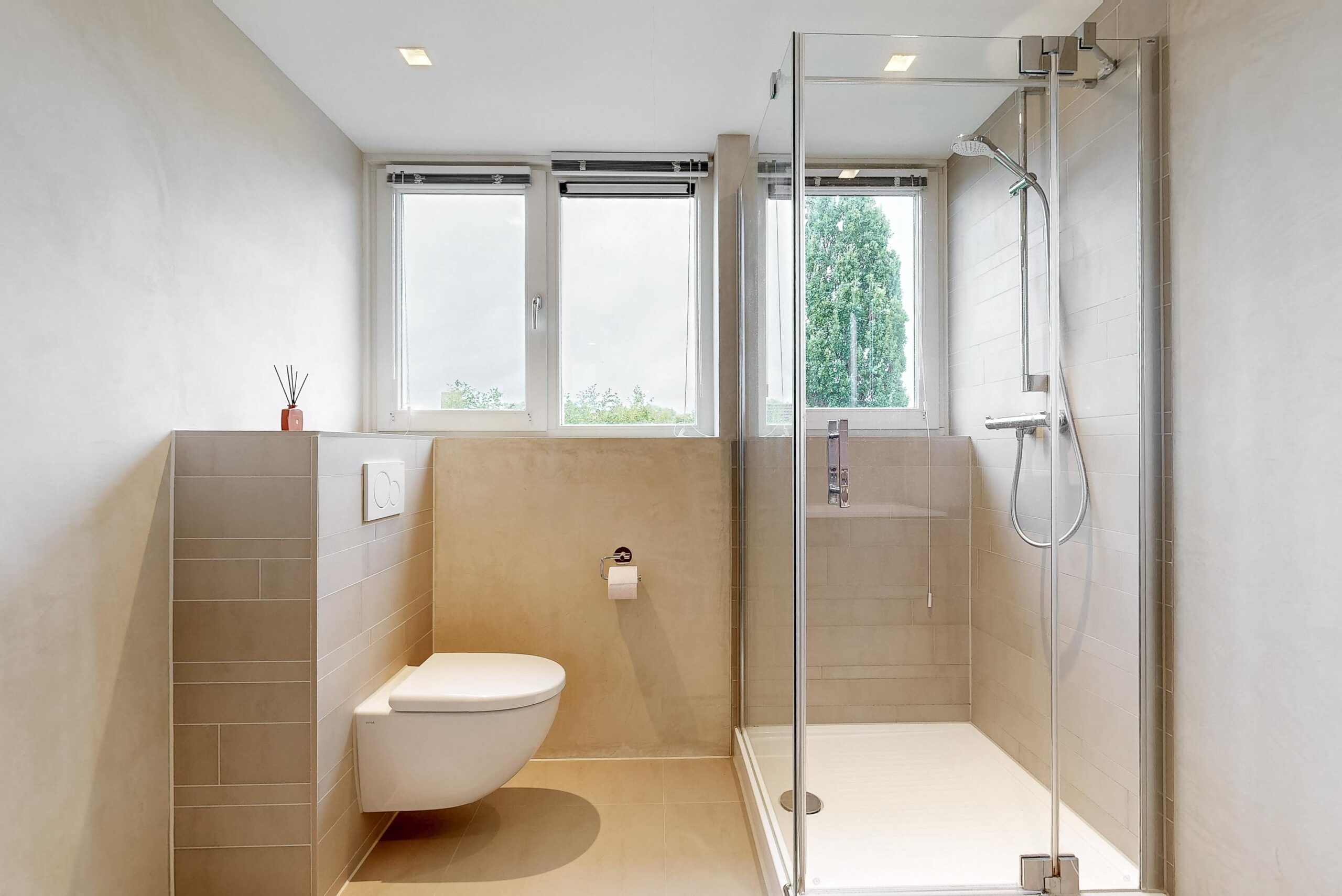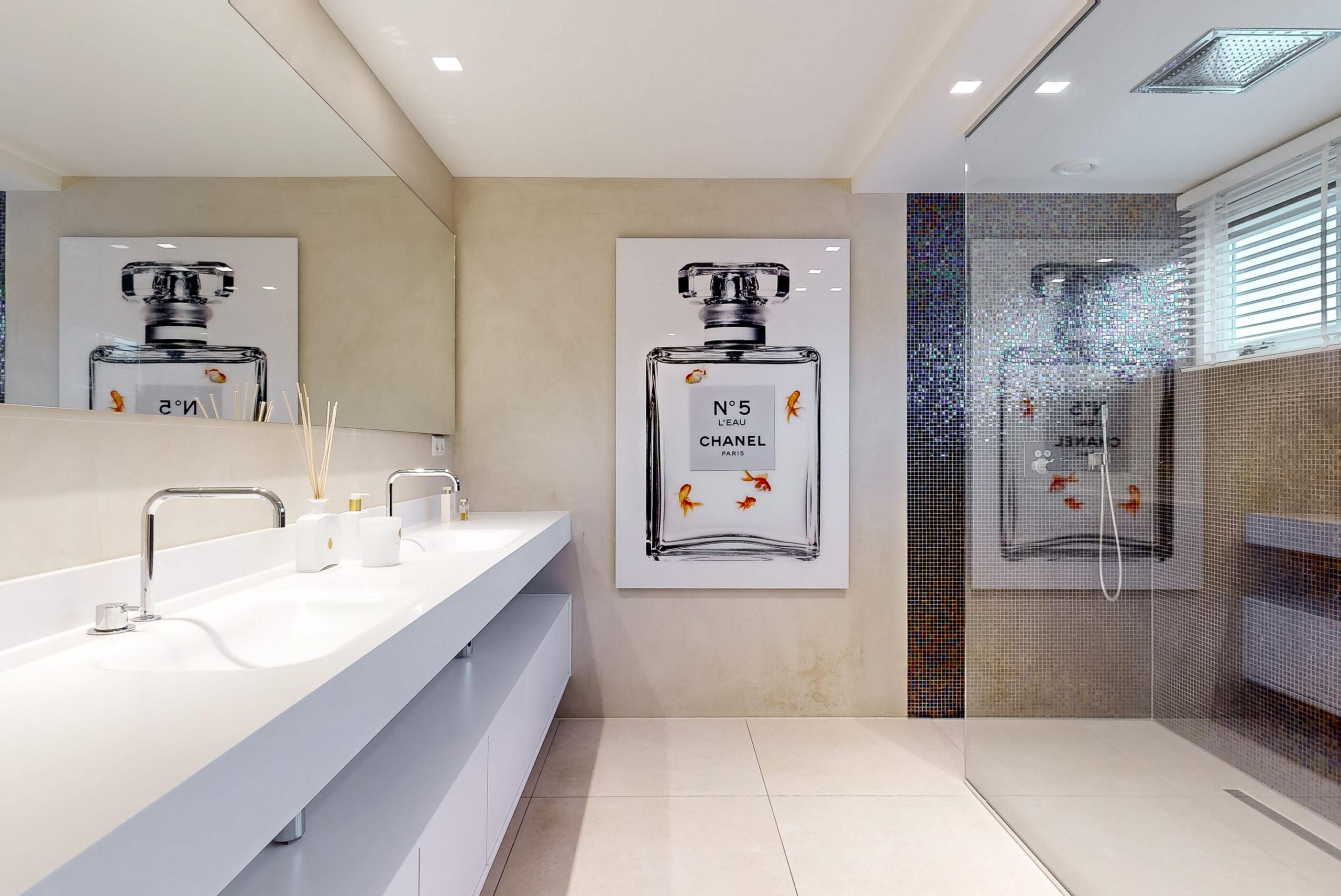 Eerste verdieping: ruime overloop, separaat 3e toilet, 2 slaapkamers, royale 3e slaapkamer met inloopkast en toegang tot luxe badkamer met duodouche, dubbele wastafel in meubel en 4e toilet.