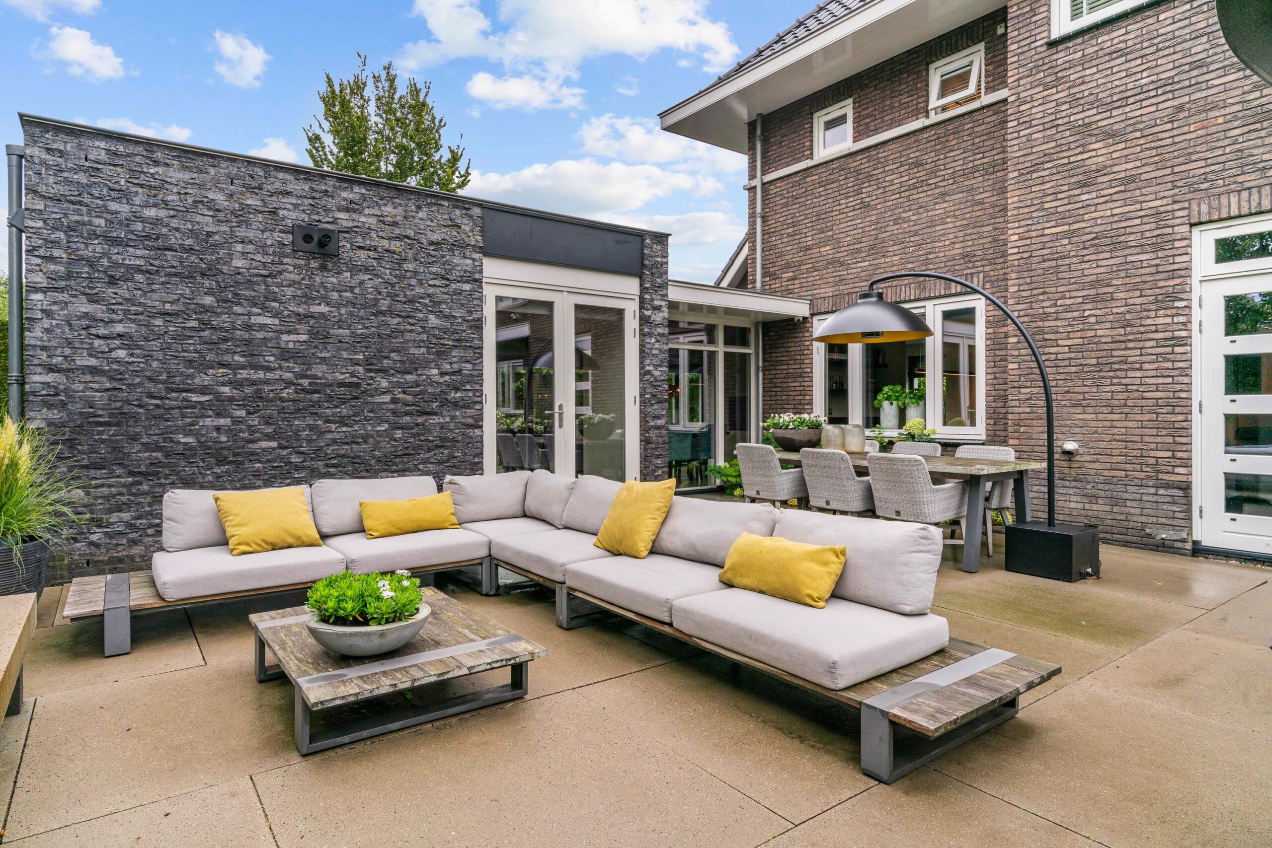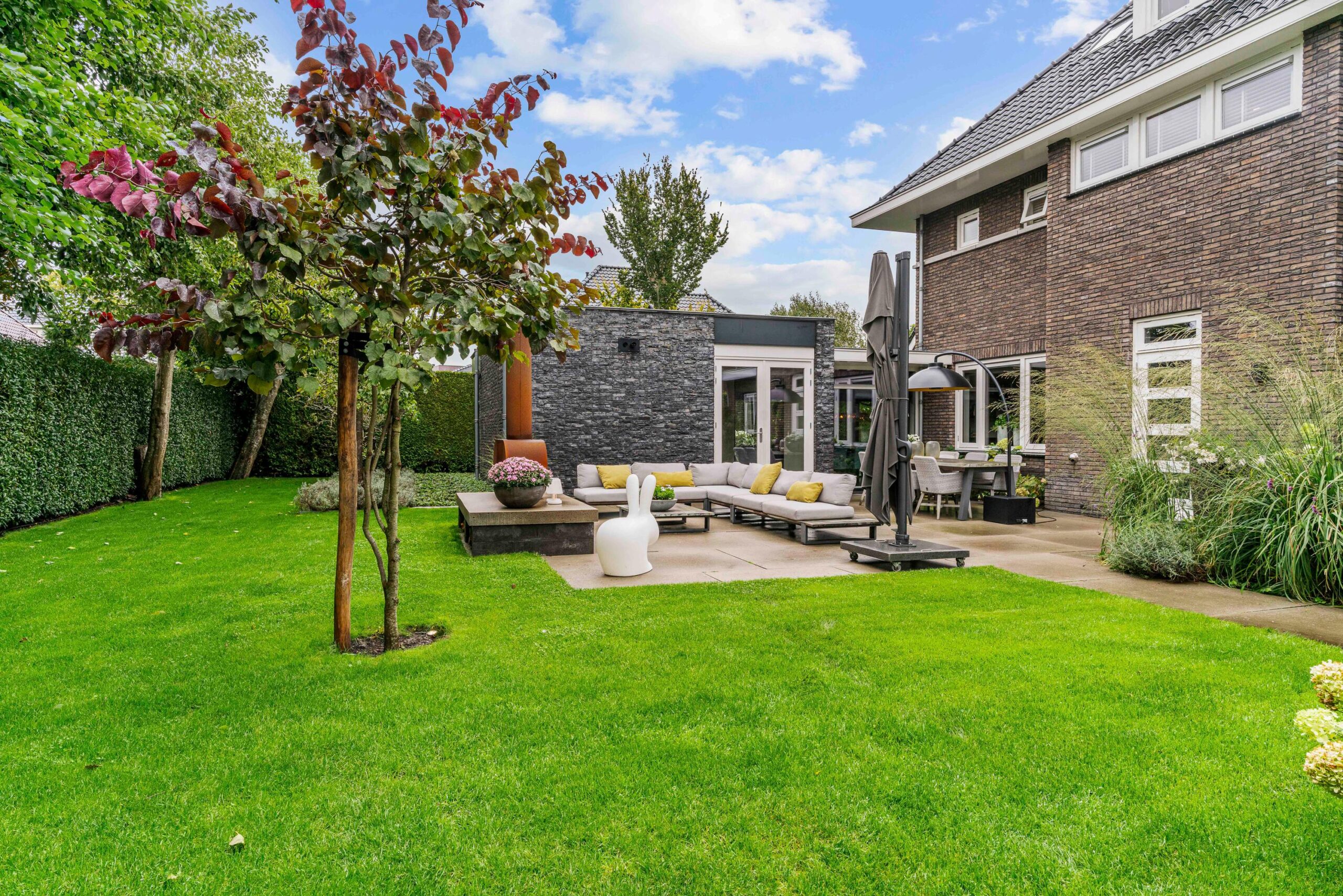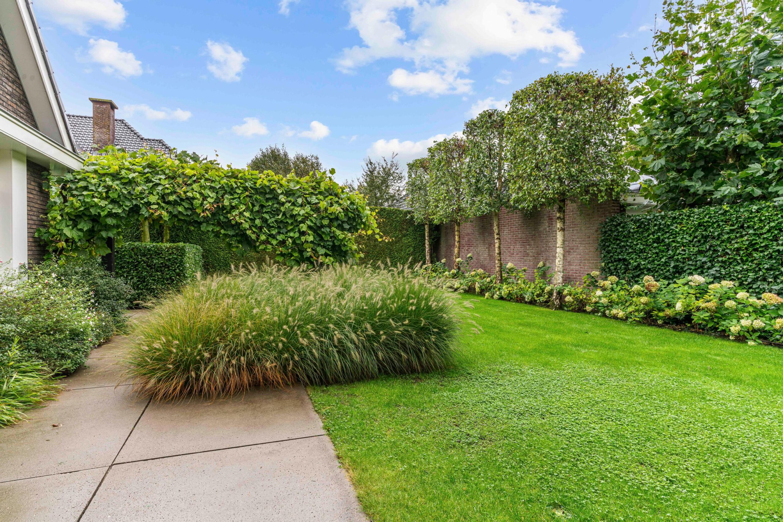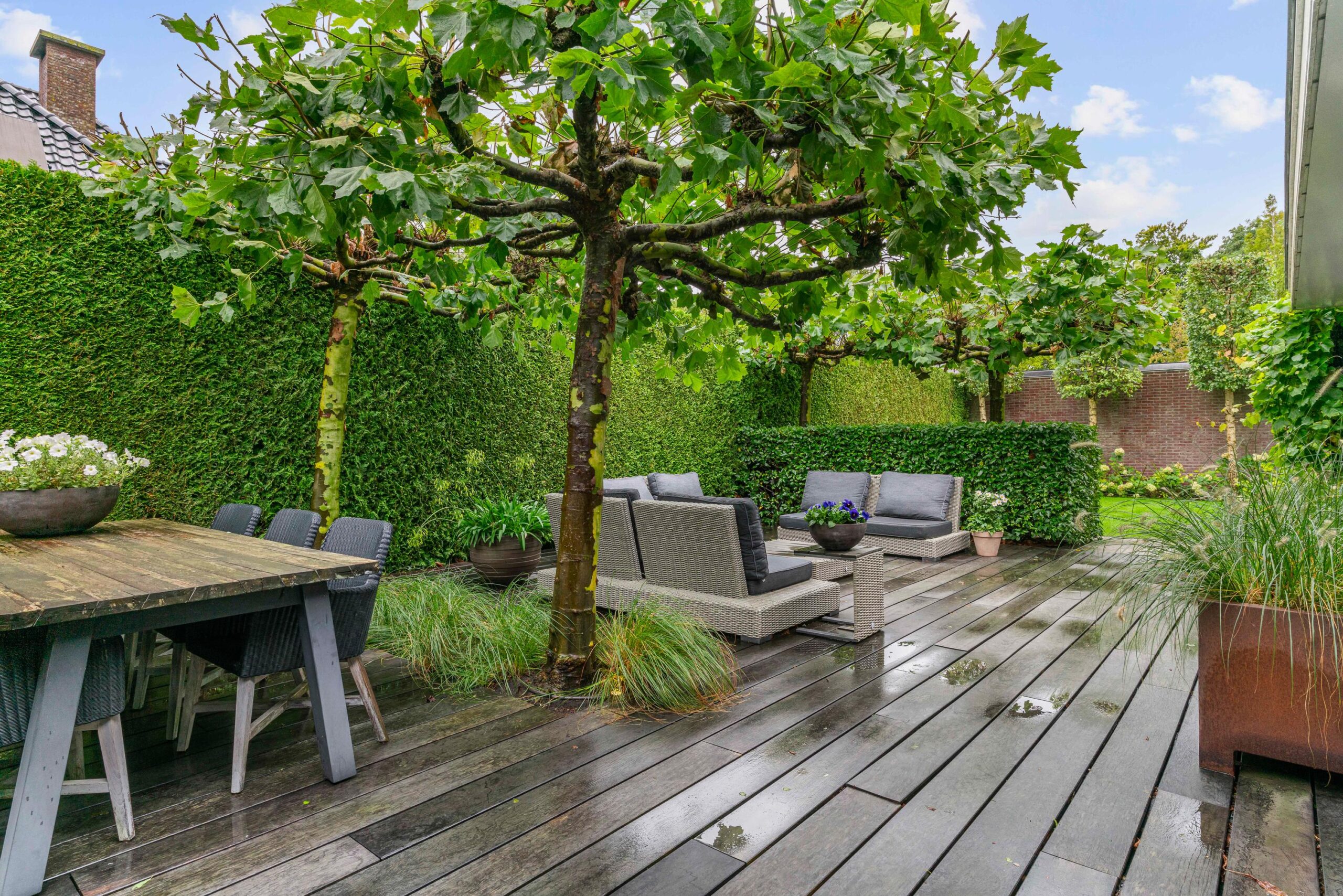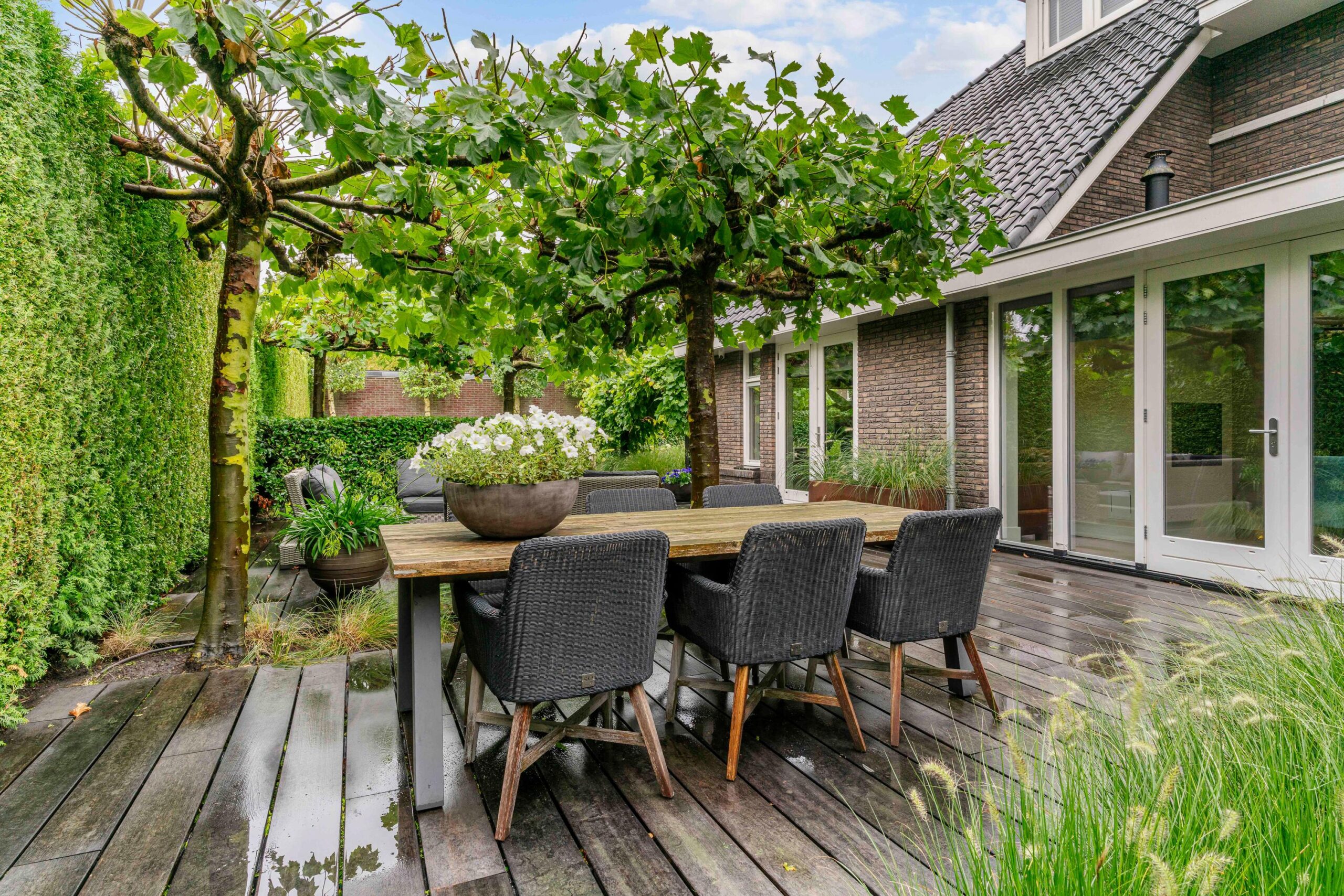 De achtertuin is gelegen op het noordwesten, fraai aangelegd en voorzien van diverse terrassen en een overkapping. De beregeningsinstallatie zorgt ervoor dat de tuin er altijd prachtig uitziet.