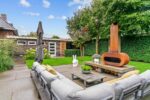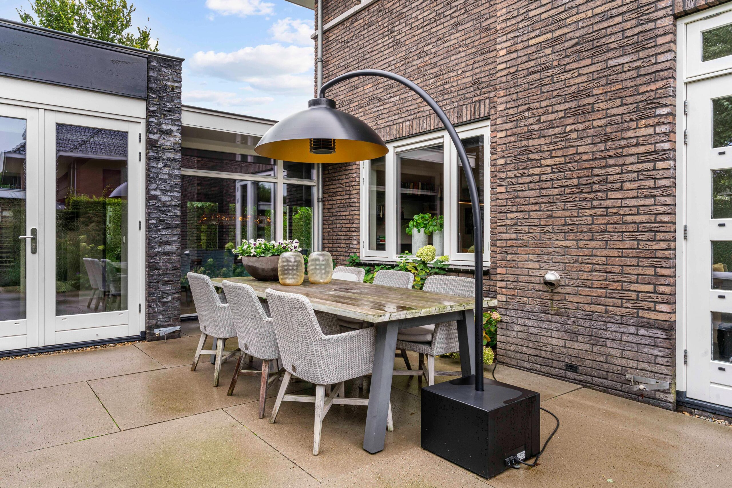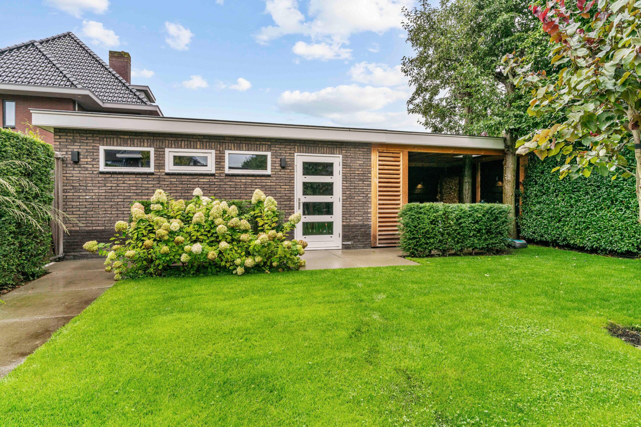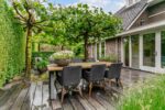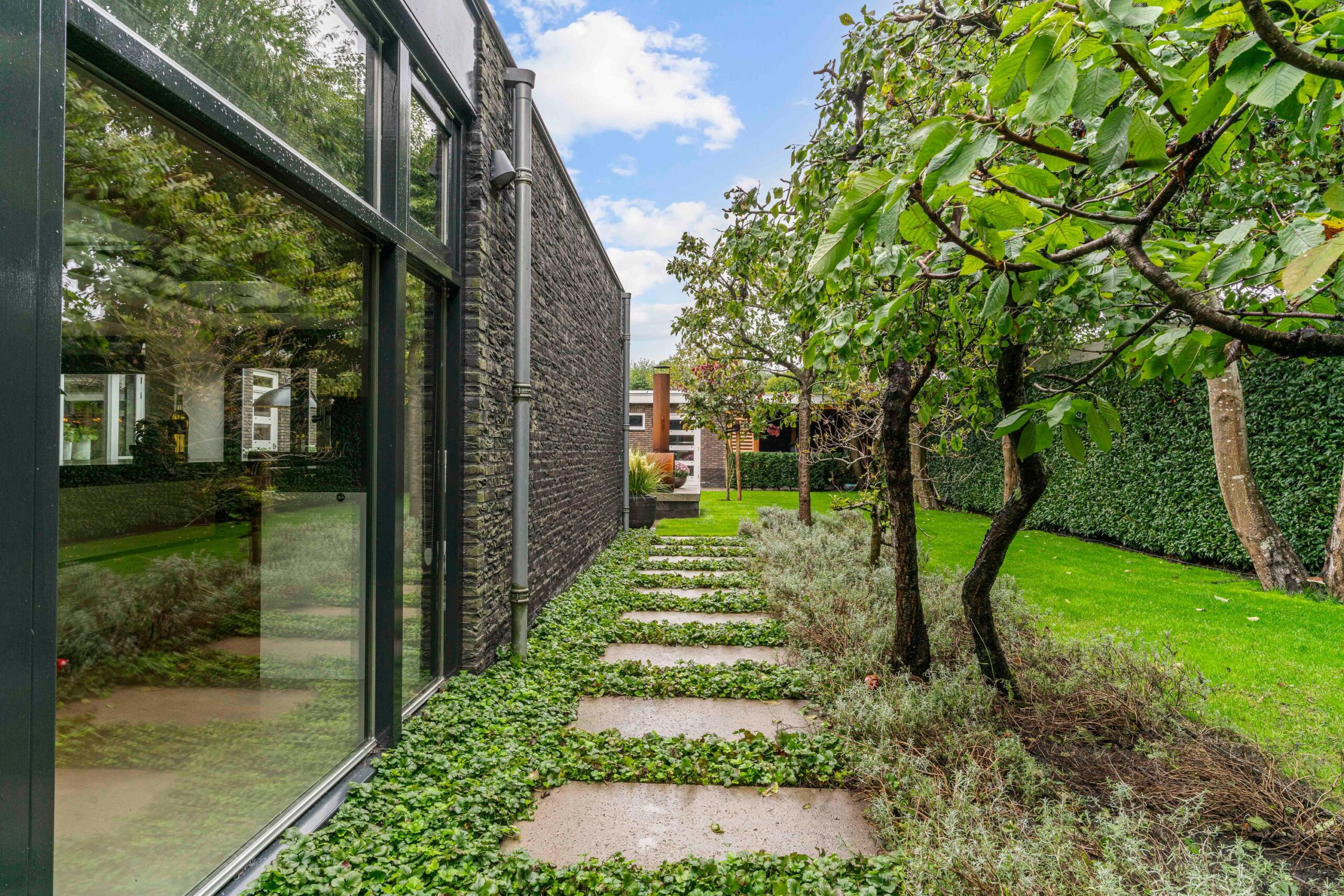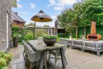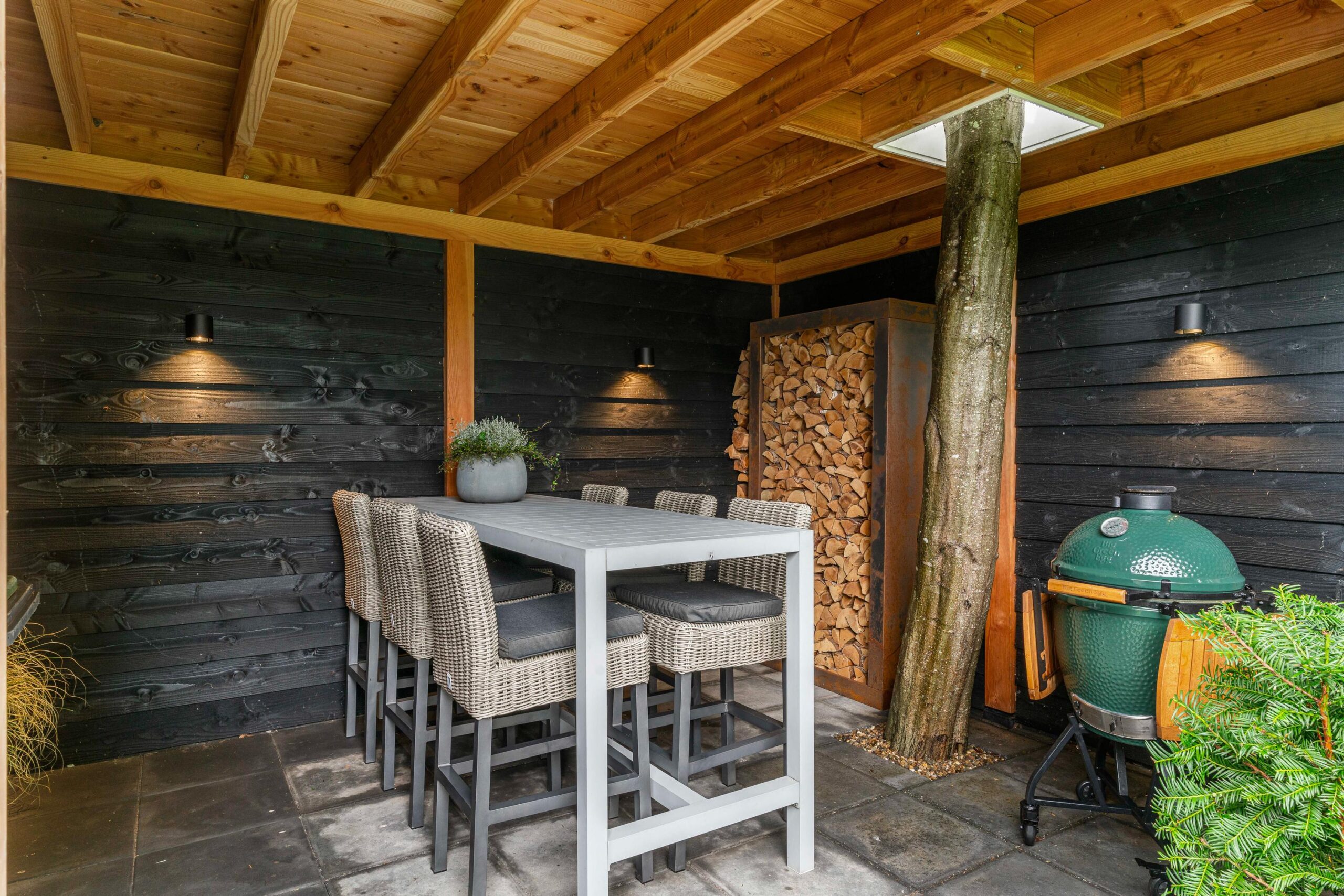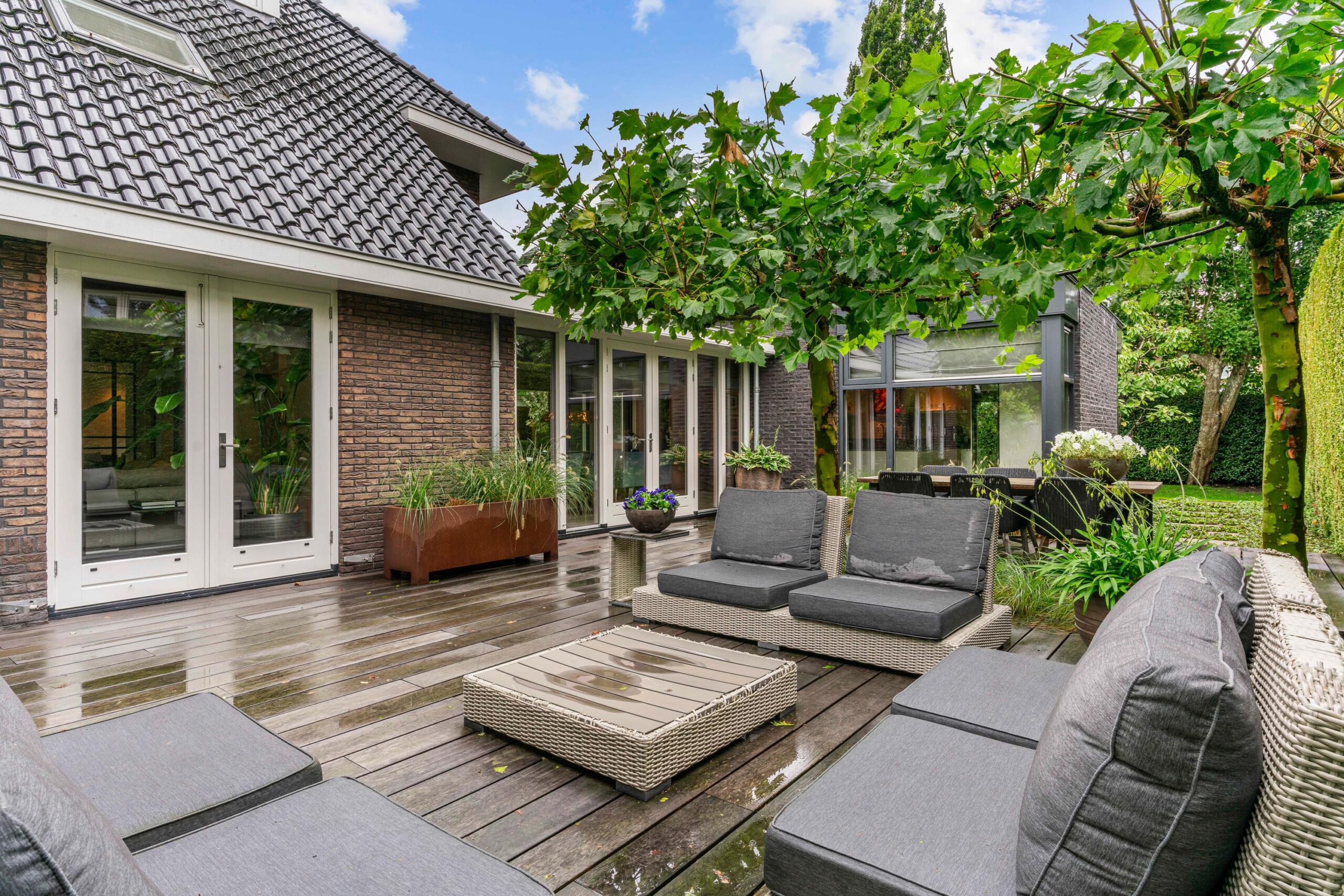 De achtertuin is gelegen op het noordwesten, fraai aangelegd en voorzien van diverse terrassen en een overkapping. De beregeningsinstallatie zorgt ervoor dat de tuin er altijd prachtig uitziet.
