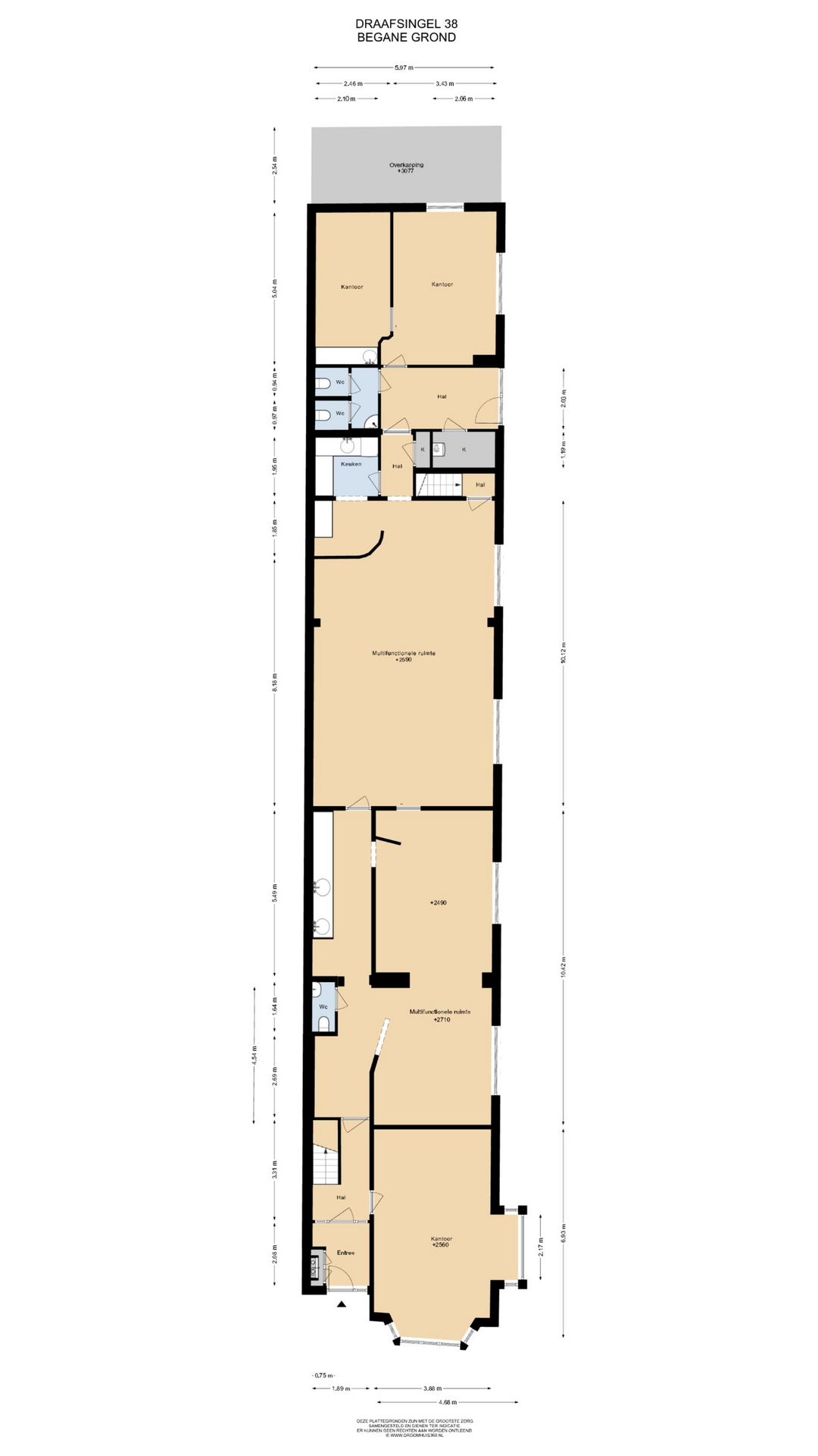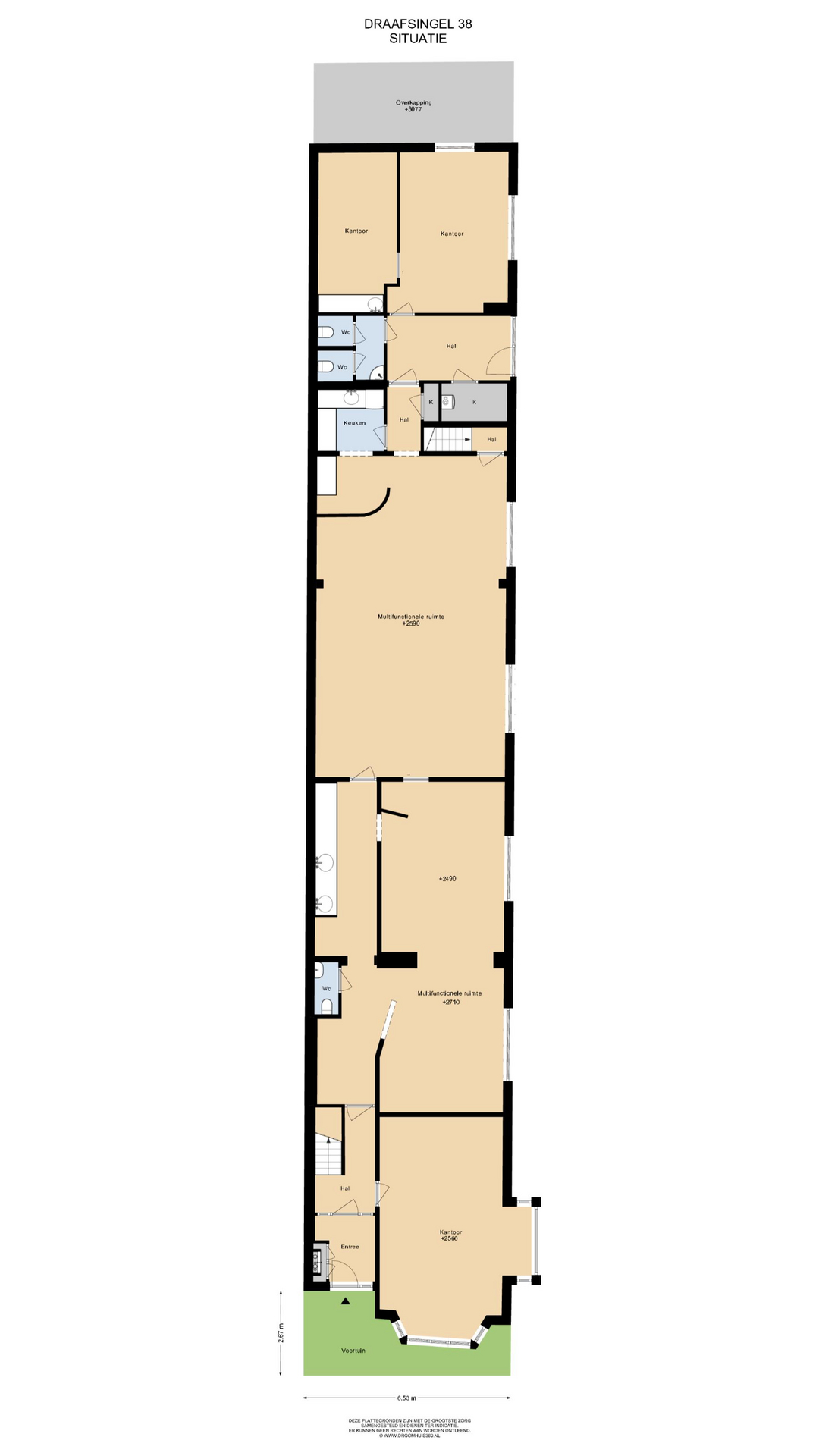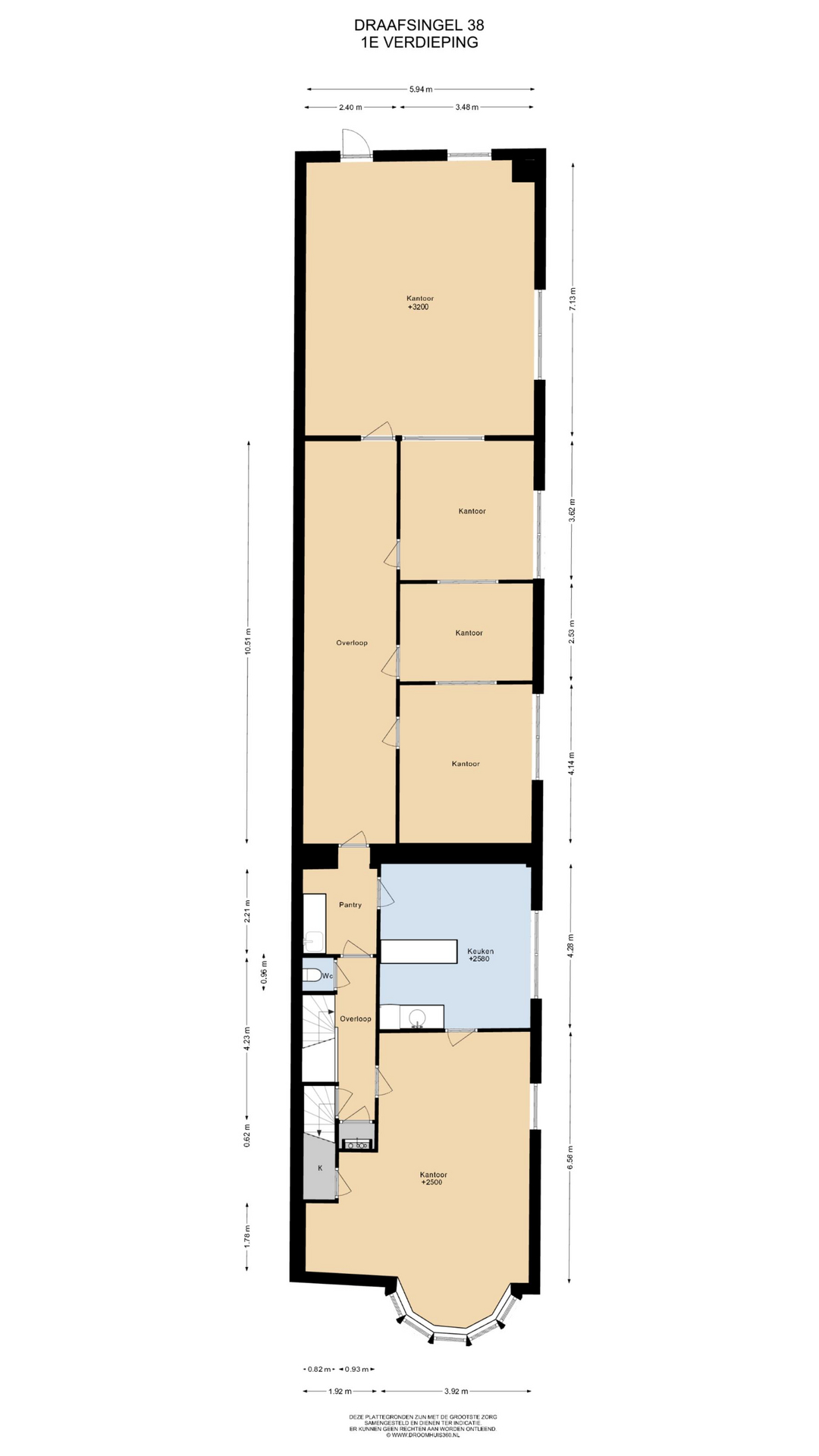 Het pand is verdeeld over een kelder van circa 80 m2, begane grond van circa 215 m2, eerste verdieping van circa 170 m2 en tweede verdieping van circa 40 m2.