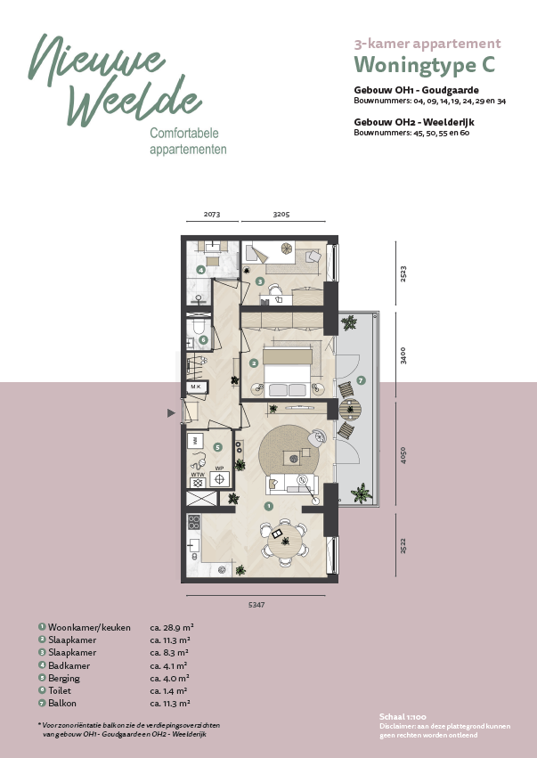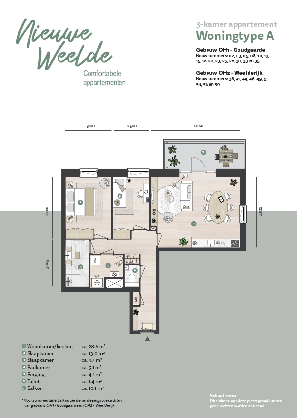 Nieuwe Weelde – HoornNieuwe Weelde in de wijk Nieuwe Steen in het hart van Hoorn biedt 60 koopappartementen, verdeeld over twee moderne woongebouwen: Goudgaarde (OH1) en Weelderijk (OH2). De gebouwen beschikken over een halfverdiepte parkeergarage met 60 parkeerplaatsen, in totaal 33 externe bergingen, een collectieve fietsenstalling en een buurtkamer.De driekamerappartementen zijn onderverdeeld in drie verschillende woningtypes, elk met een rianr balkon en uitzicht op het omringende groen. Comfortabel, gelijkvloers én zeer energiezuinig, met eigen warmtepomp en vloerverwarming.U kunt zich inschrijven als kandidaat voor een van de 60 appartementen. Bij inschrijving kunt u uw favoriete bouwnummer via het digitale inschrijfformulier op de projectwebsite aangeven. De verkooptekeningen en prijslijst, zijn gepubliceerd op de projectwebsite.De koop-/ aanneemsom bedraagt € 427.500,- inclusief een eigen parkeerplaats in de onderbouw.Comfortabel wonen in het kort? 60 koopappartementen, elk met twee slaapkamers? 3 woningtypes (A, B en C) variërend van ± 70 tot 88 m2? prachtig groene omgeving? parkeergarage met 60 parkeerplaatsen? woonkamer met open keuken en toegang tot het balkon (± 10 à 11 m2)? moderne badkamer, separaat toilet en praktische berging/technische ruimte.? collectieve fietsenstalling voor 27 appartementen en 33 externe bergingen? zeer energiezuinig en duurzaam met een voorlopig energielabel A+++Voor meer informatie en beschikbare bouwnummers, zie de projectwebsite.